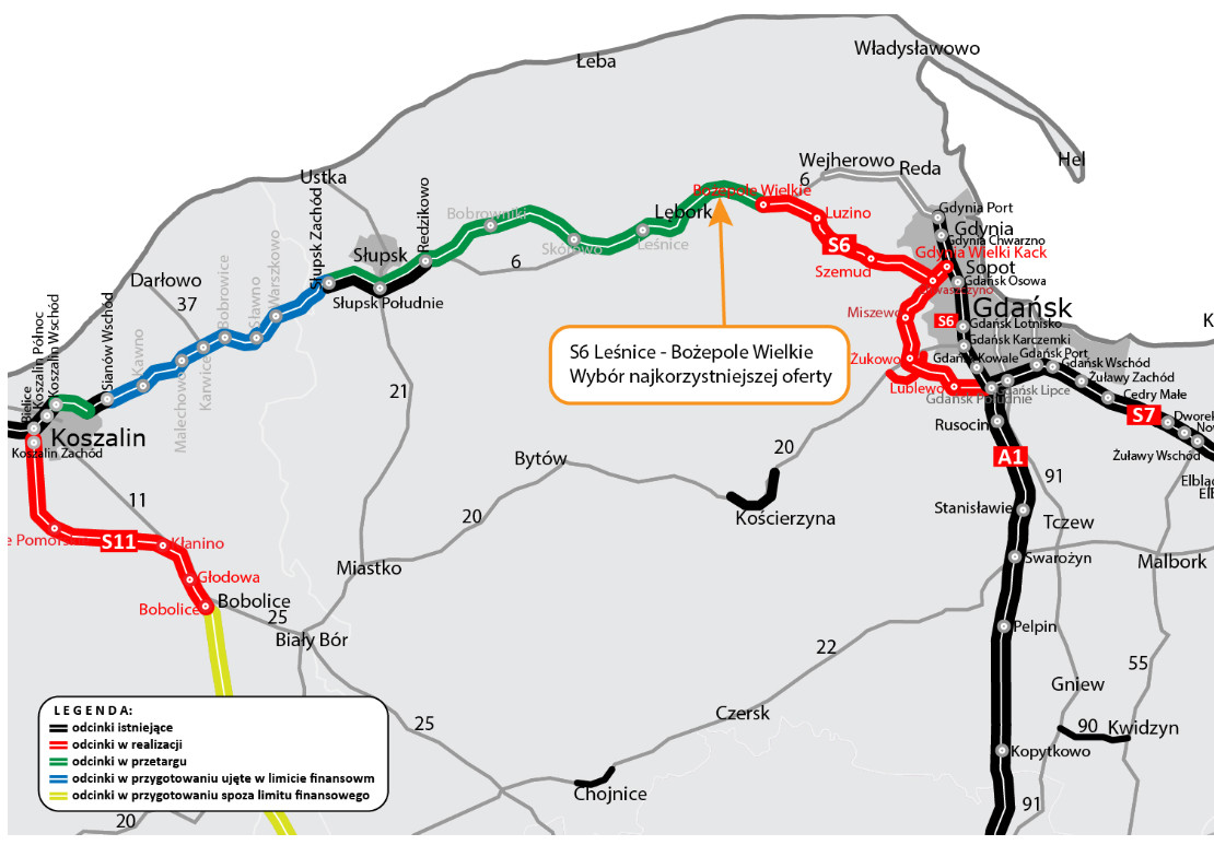 — Postępowanie przetargowe obejmowało odcinek drogi ekspresowej S6, realizowany po decyzji rządu o przeznaczeniu dodatkowych środków z budżetu państwa na budowę tej trasy. Łącznie w przetargach jest pięć odcinków S6 między obwodnicą Słupska a Bożympolem Wielkim o długości ok. 72 kilometrów - czytamy w komunikacie GDDKiA.