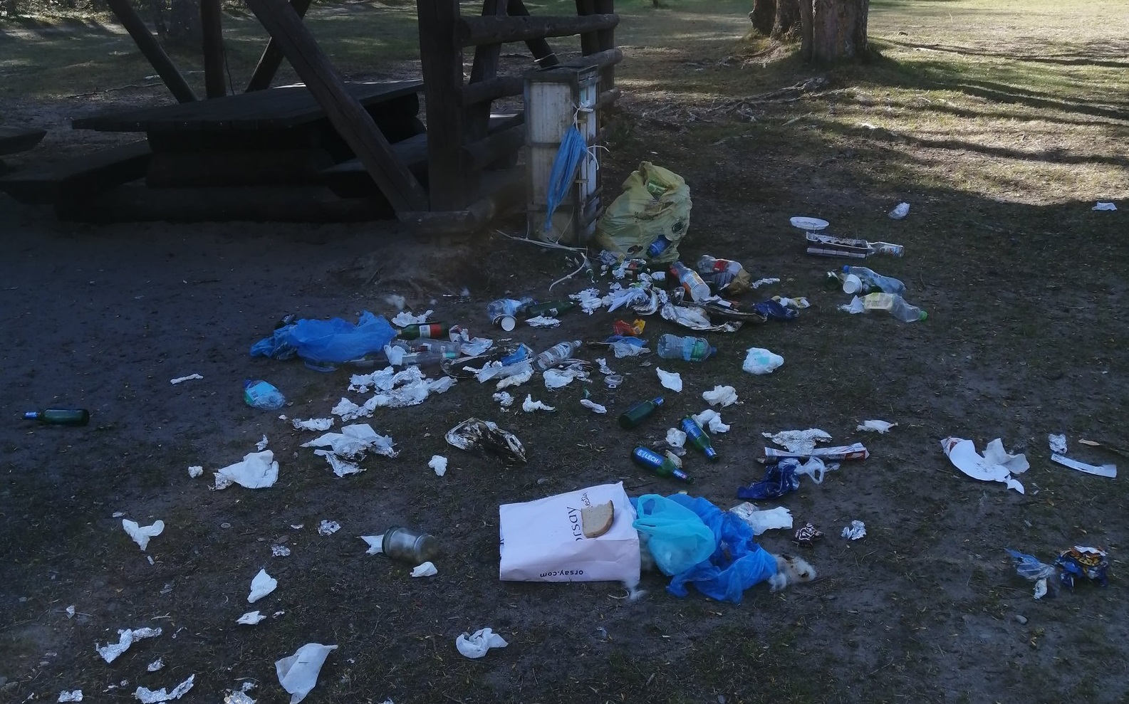 Nadleśniczy Jacek Szulc komentuje, że są to pieniądze wyrzucane w błoto. A wystarczyłoby tak naprawdę, żeby każdy po odpoczynku w lesie zabrał to, co przyniósł ze sobą.