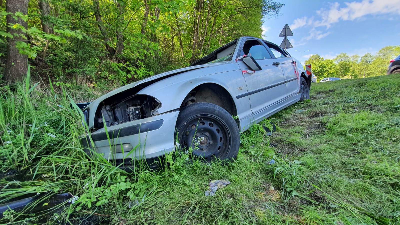„Jest tam już od ponad tygodnia i nikt z tym nic nie robi” – napisał do nas czytelnik. Chodzi o wrak samochodu, który leży w rowie przy krajowej szóstce w Redzie.