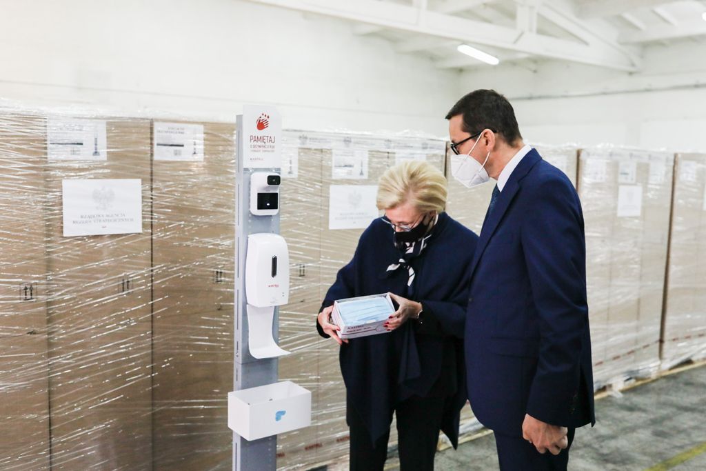 – Około 32 tys. transportów i ponad 500 tirów mają zapewnić dodatkowe bezpieczeństwo poprzez system dezynfekcyjny i systemy ochronne mierzenia temperatury. To wszystko pomoże dyrekcji szkół i kierownictwu placówek, żeby utrzymać to bezpieczeństwo - mówił premier Mateusz Morawiecki podczas wizyty w składnicy Rządowej Agencji rezerw Strategicznych w Komorowie.
