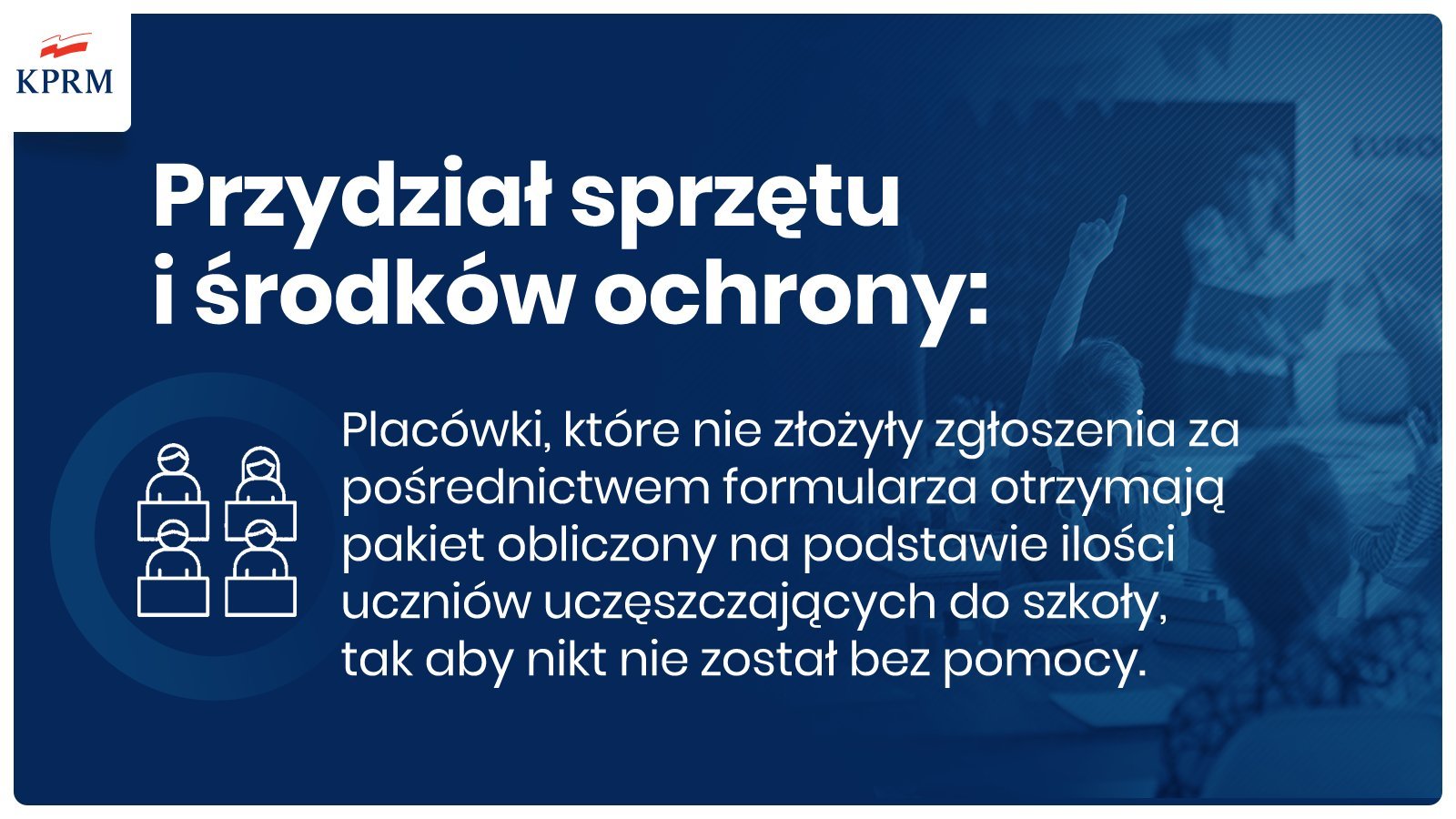 Środki mają trafić także do szkół, które nie zgłosiły takiego zapotrzebowania. Placówki te otrzymają pakiet obliczony na podstawie ilości uczniów uczęszczających do szkoły. Sprzęt zostanie dostarczony bezpłatnie.