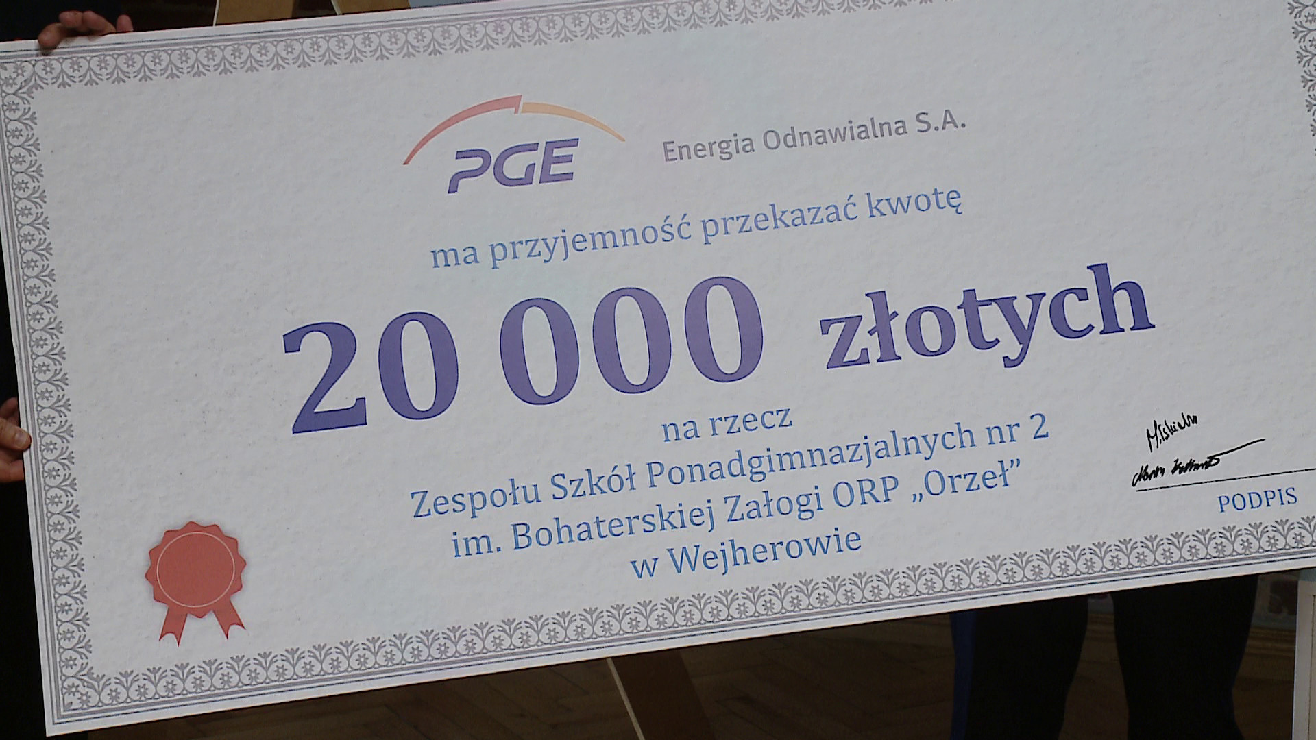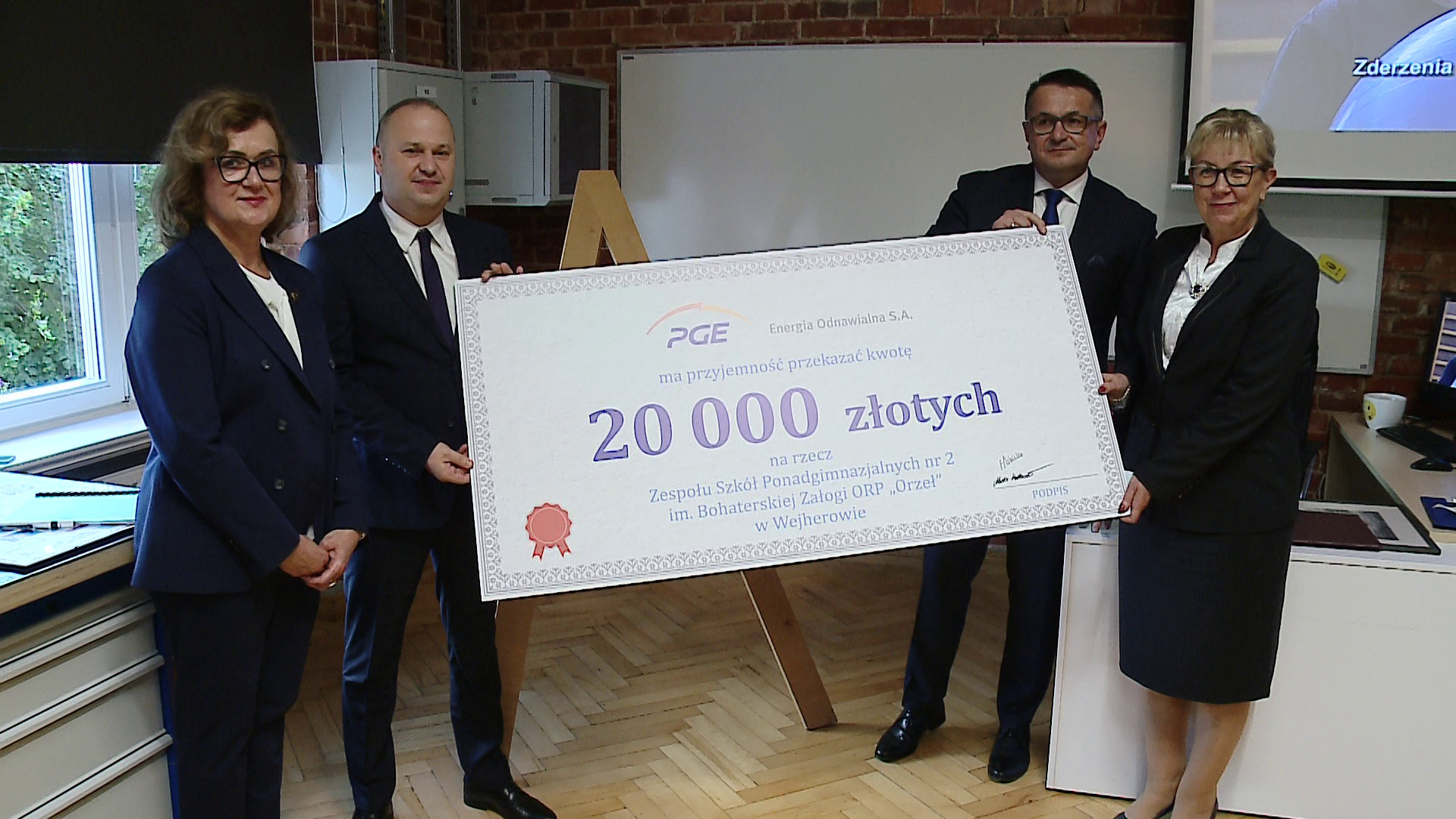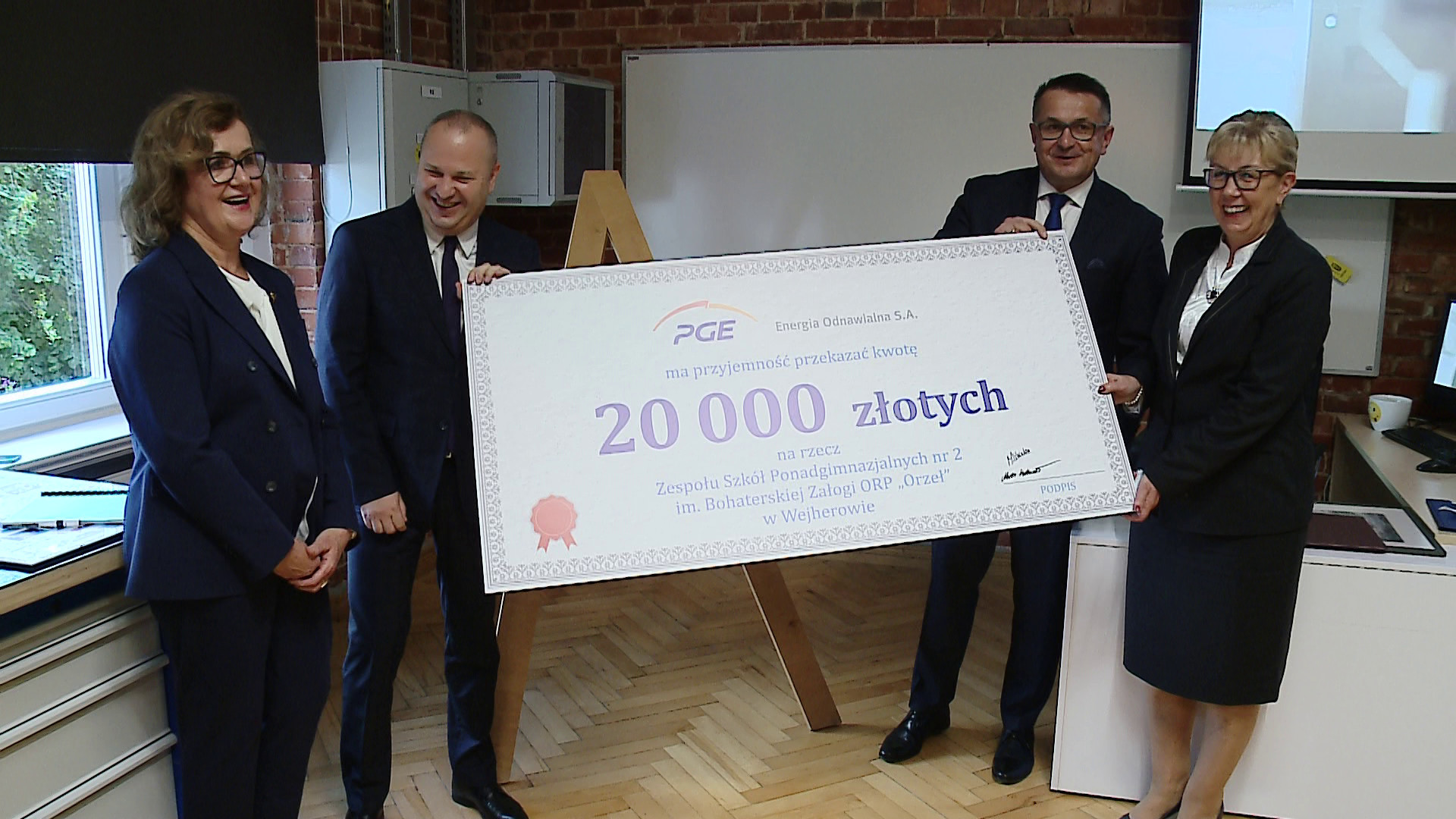 W czwartek (30 października) dyrekcja ZSP nr 2 w Wejherowie oraz starosta wejherowski odebrali symboliczny czek o wartości 20 tysięcy złotych od sponsora, którym jest PGE Energia Odnawialna. Finanse powędrują na cele kształcenia praktycznego w zawodzie technik elektryk, technik energetyk, technik automatyk, technik urządzeń i systemów energetyki odnawialnej. Zostaną doposażone szkole pracownie.