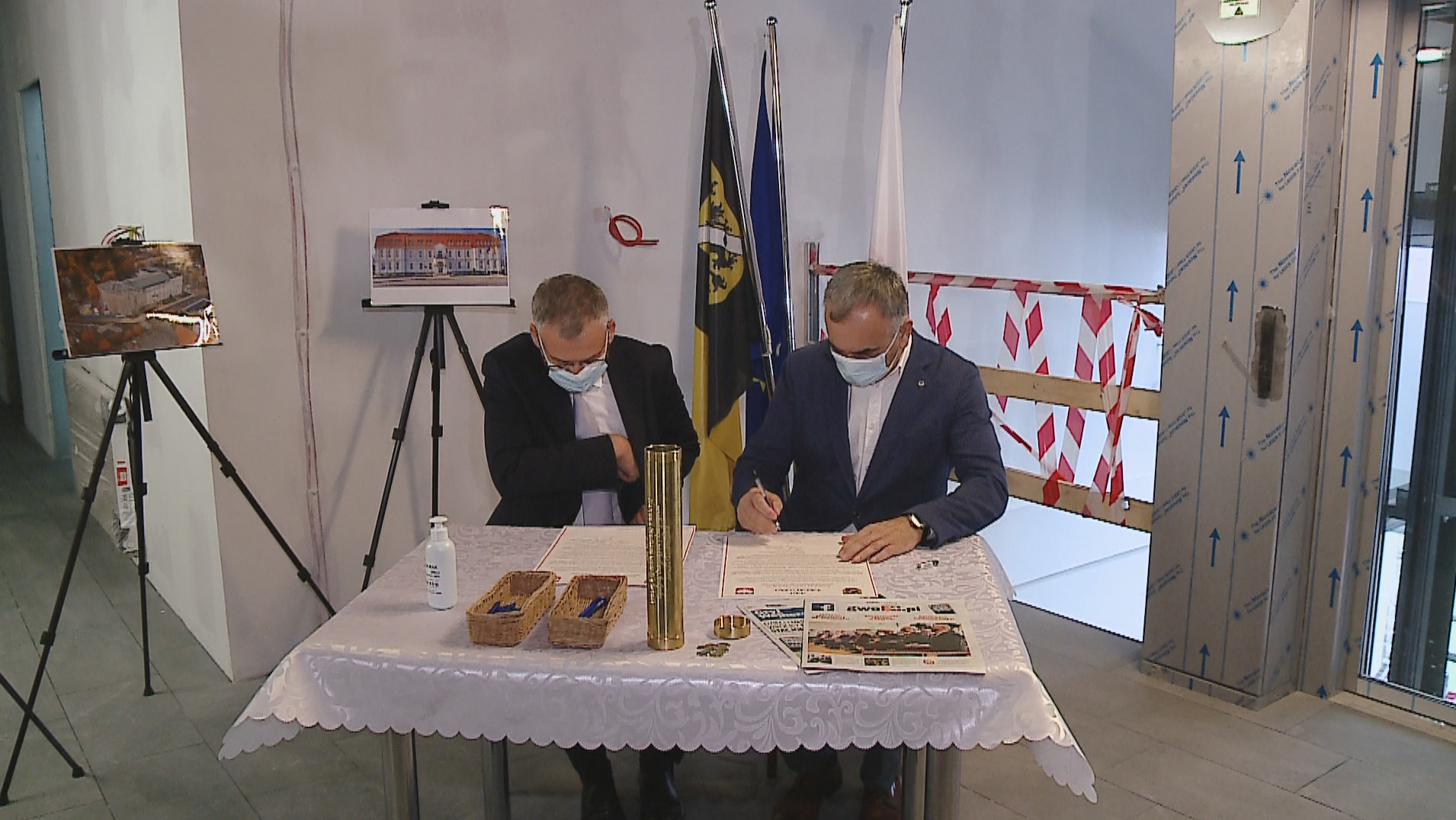 Prace w budynku starostwa w Wejherowie trwają już od dłuższego czasu. W piątek, 3 września odbyło się uroczyste wmurowanie aktu erekcyjnego pod rozbudowywaną część. Inwestycja, jak zapewnia wykonawca, ma zakończyć się na przełomie lutego i marca 2022 roku.