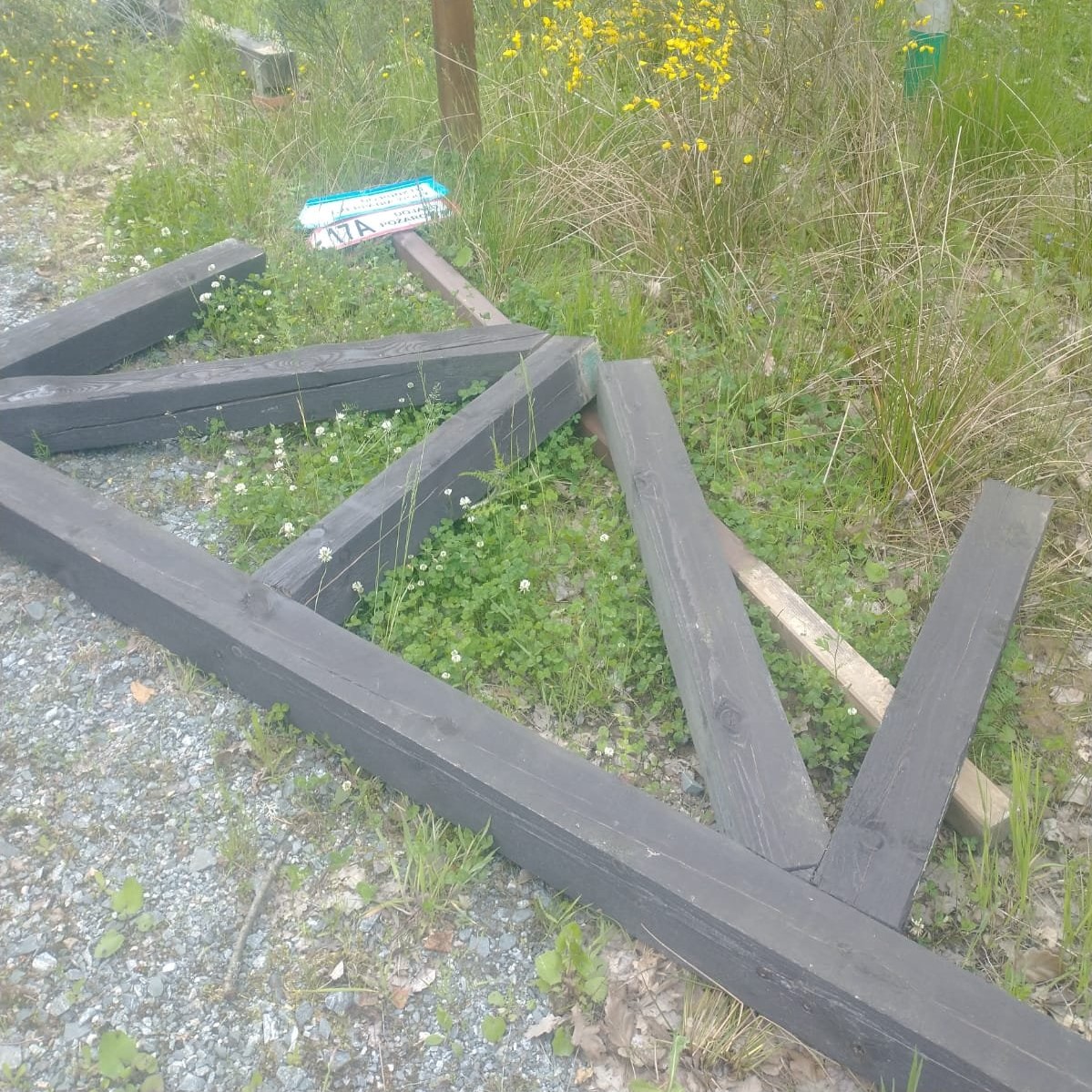 Nieznani sprawcy powalili na ziemię i połamali pomost, płotki oraz znaki.