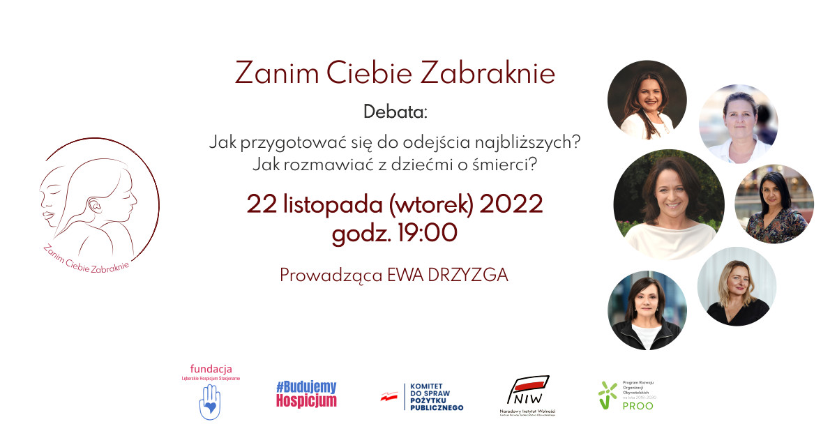 **Jak przygotować się do odejścia najbliższych? Jak rozmawiać z dziećmi o śmierci? To trudne pytania, na które będą odpowiadać eksperci podczas debaty online 22 listopada o godz. 19:00. Debatę poprowadzi Ewa Drzyzga.