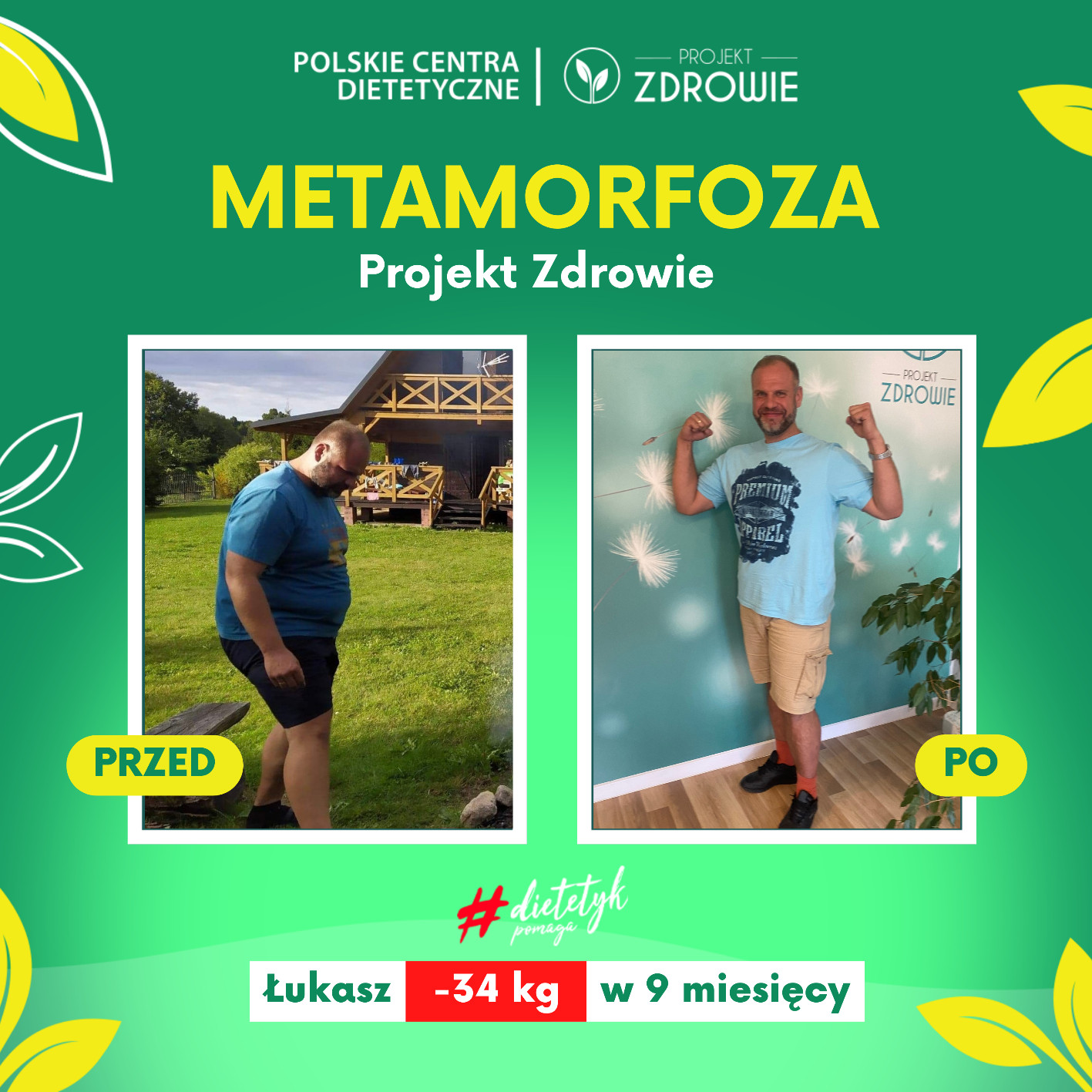 Pan Łukasz, który dokonał niesamowitej przemiany z pomocą dietetyka Projektu Zdrowie - schudł, aż 34 kg w 9 miesięcy!