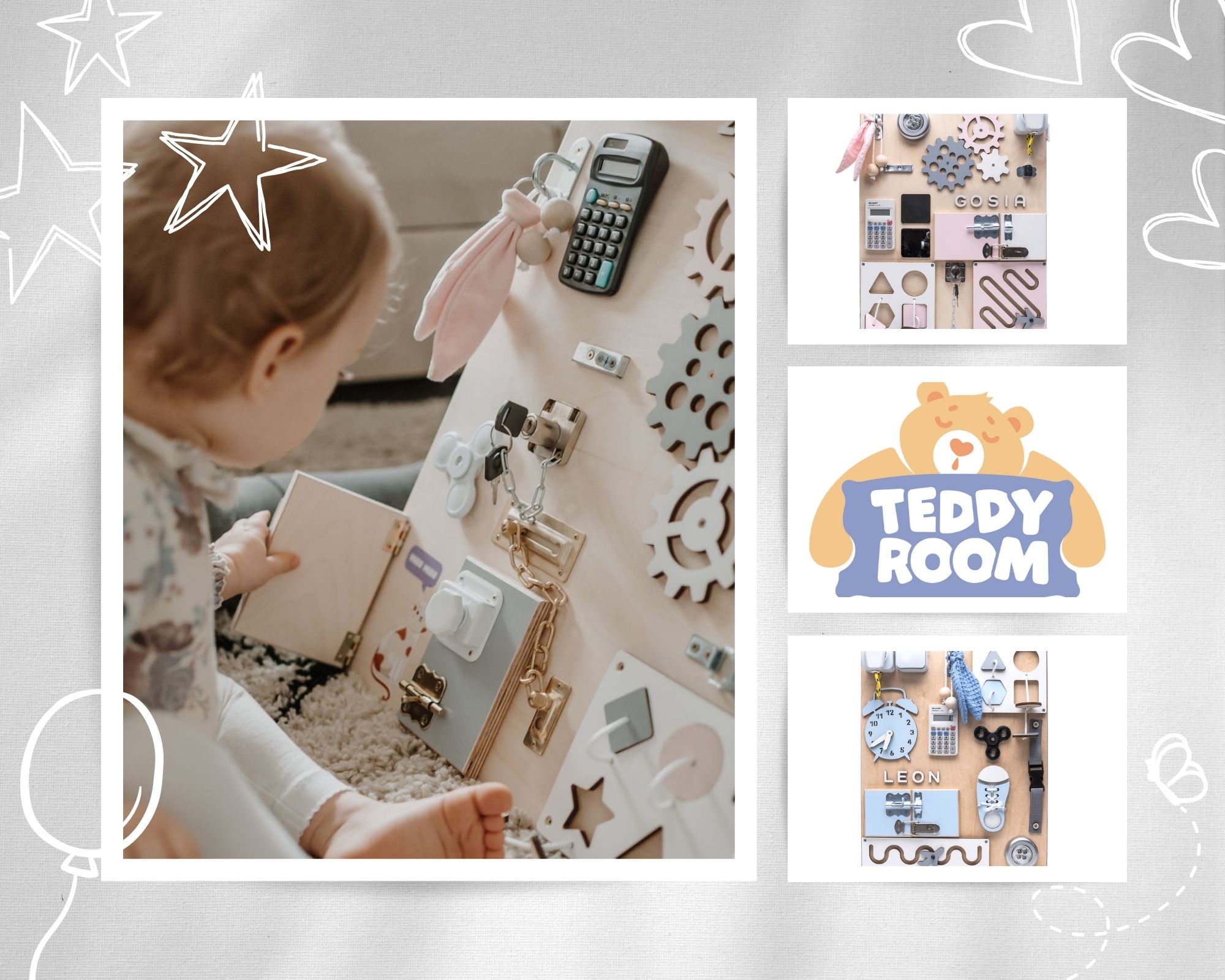 Szeroki asortyment sklepu internetowego Teddyroom.pl sprawia, że może wybrać nie tylko wielkość tablic sensorycznych, ale również ich design. Różne kolory produktów, a także zróżnicowane akcesoria, które zostają przyczepione do tablic, sprawiają, że możesz dopasować produkt do dziecięcych preferencji lub wybrać ten, który będzie pasował do pokoiku najmłodszych mieszkańców Twojego domu. Kolorowe tablice świetnie sprawdzają się, jako dekoracje. Możesz postawić je przy ścianie lub na stałe do niej przytwierdzić. Dzięki temu nie będą zajmować dodatkowego miejsca w pokoju, jak reszta zabawek, zaś staną się oryginalnym dodatkiem do tworzonego wnętrza. Postaw na bezpieczne i sprawdzone tablice od TeddyRoom.pl. Wybieraj jedynie pewne produkty dla swoich pociech i podaruj im wyjątkowe zabawki o edukacyjnym i rozwojowym charakterze.