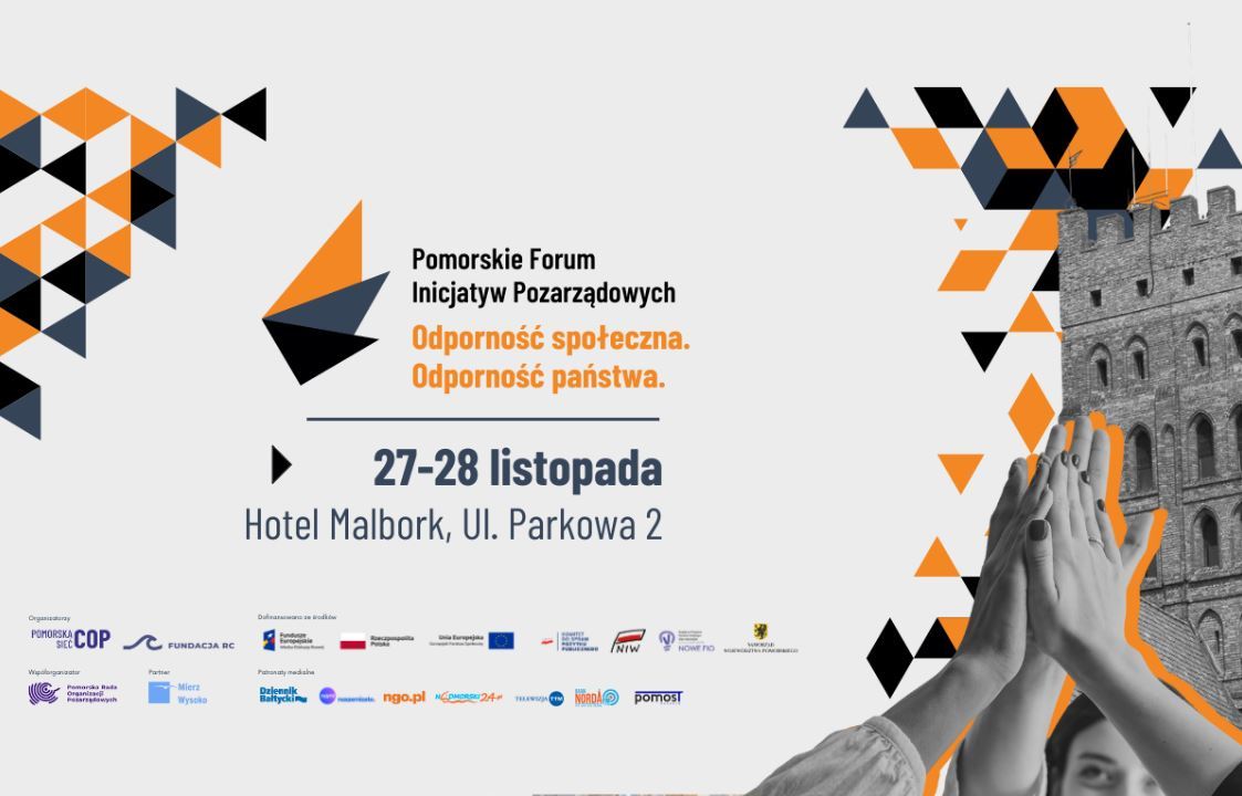 W dniach 27–28 listopada 2025 roku w Hotelu Malbork odbędzie się kolejna edycja Pomorskiego Forum Inicjatyw Pozarządowych, której hasło brzmi: „Odporność społeczna, Odporność państwa”. Tegoroczny program łączy refleksję nad kondycją społeczeństwa obywatelskiego z praktycznym spojrzeniem na rolę organizacji pozarządowych w budowaniu trwałej, silnej wspólnoty w szczególności w lokalnych społecznościach.