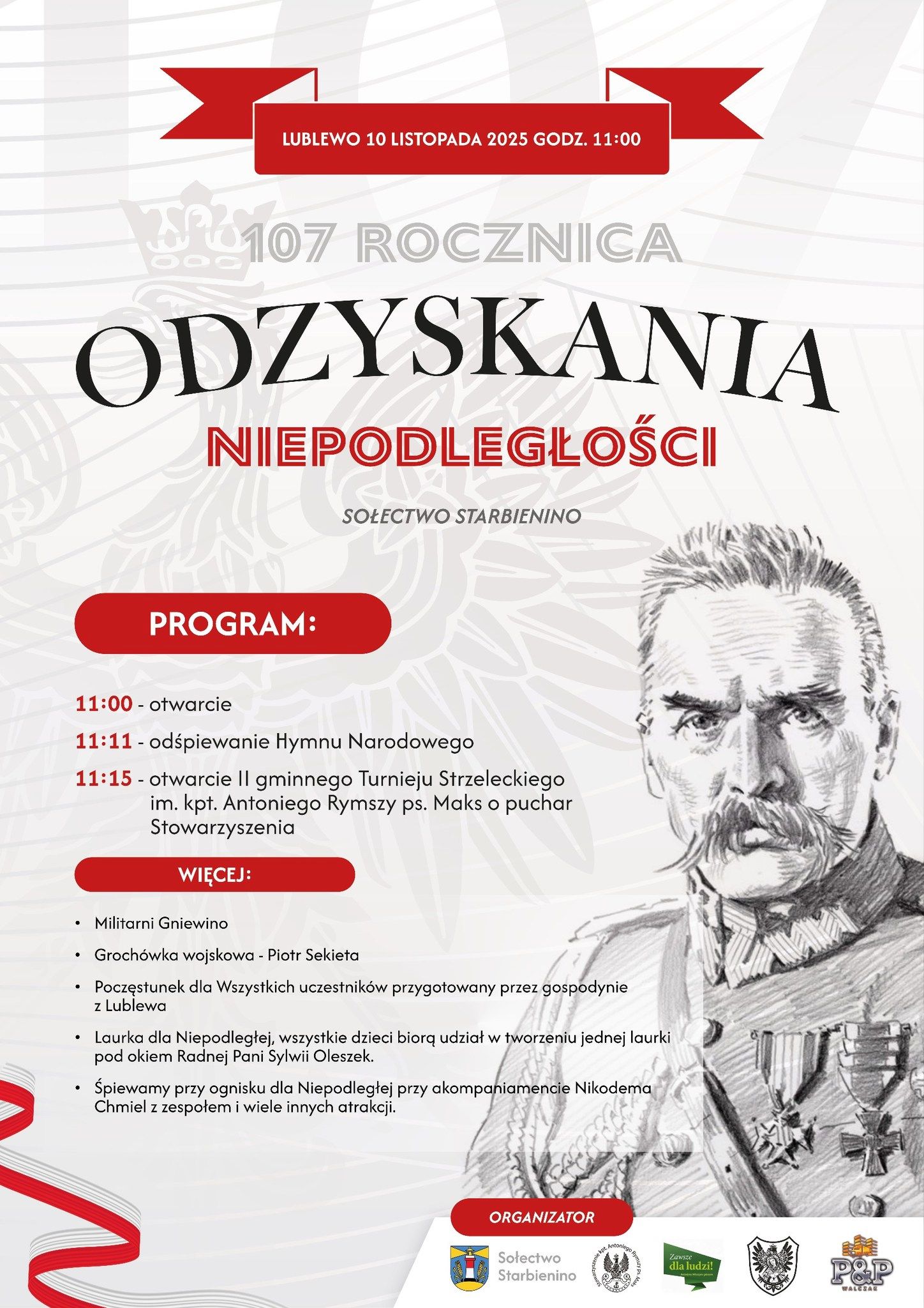 Około godz. 10.40 wyruszy barwy przemarsz z kościelnego parkingu na lokalne boisko szkolne. A tam m.in. na mieszkańców czekać będą: wspólny śpiew pieśni patriotycznych, quiz historyczny, występy artystyczne, stanowisko KGW i zabawy sportowe.