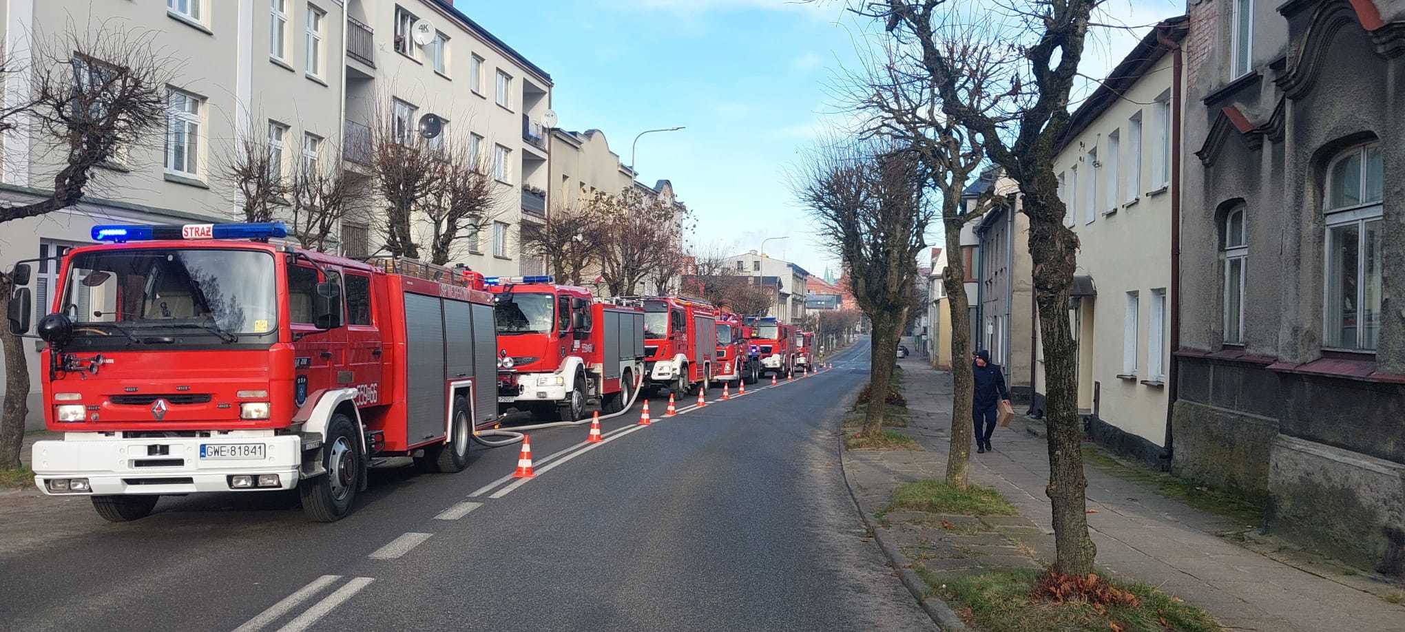 Do pożaru poddasza doszło w okolicy centrum Wejherowa. Na miejsce zdarzenia wezwano sześć zastępów straży pożarnej.