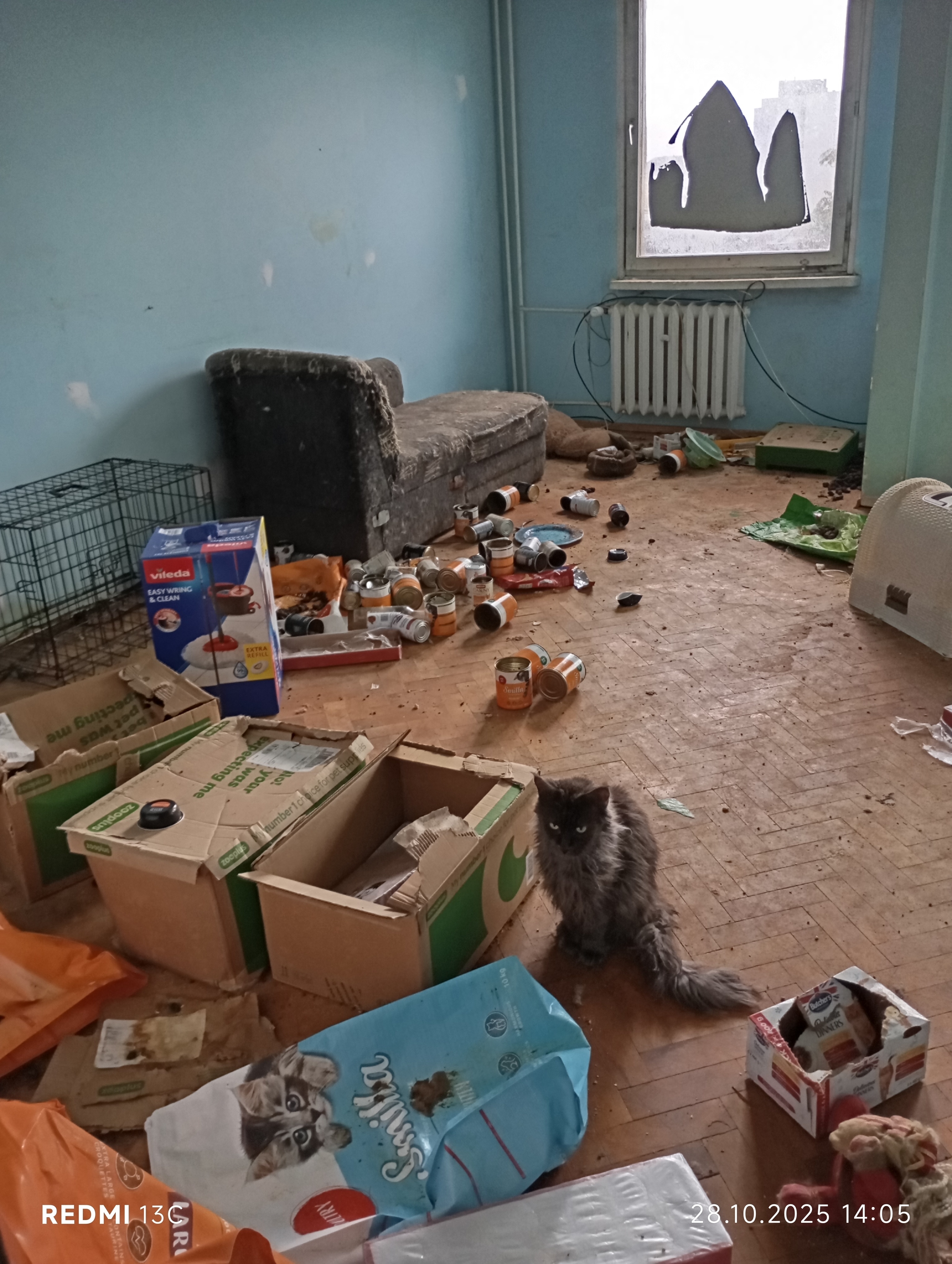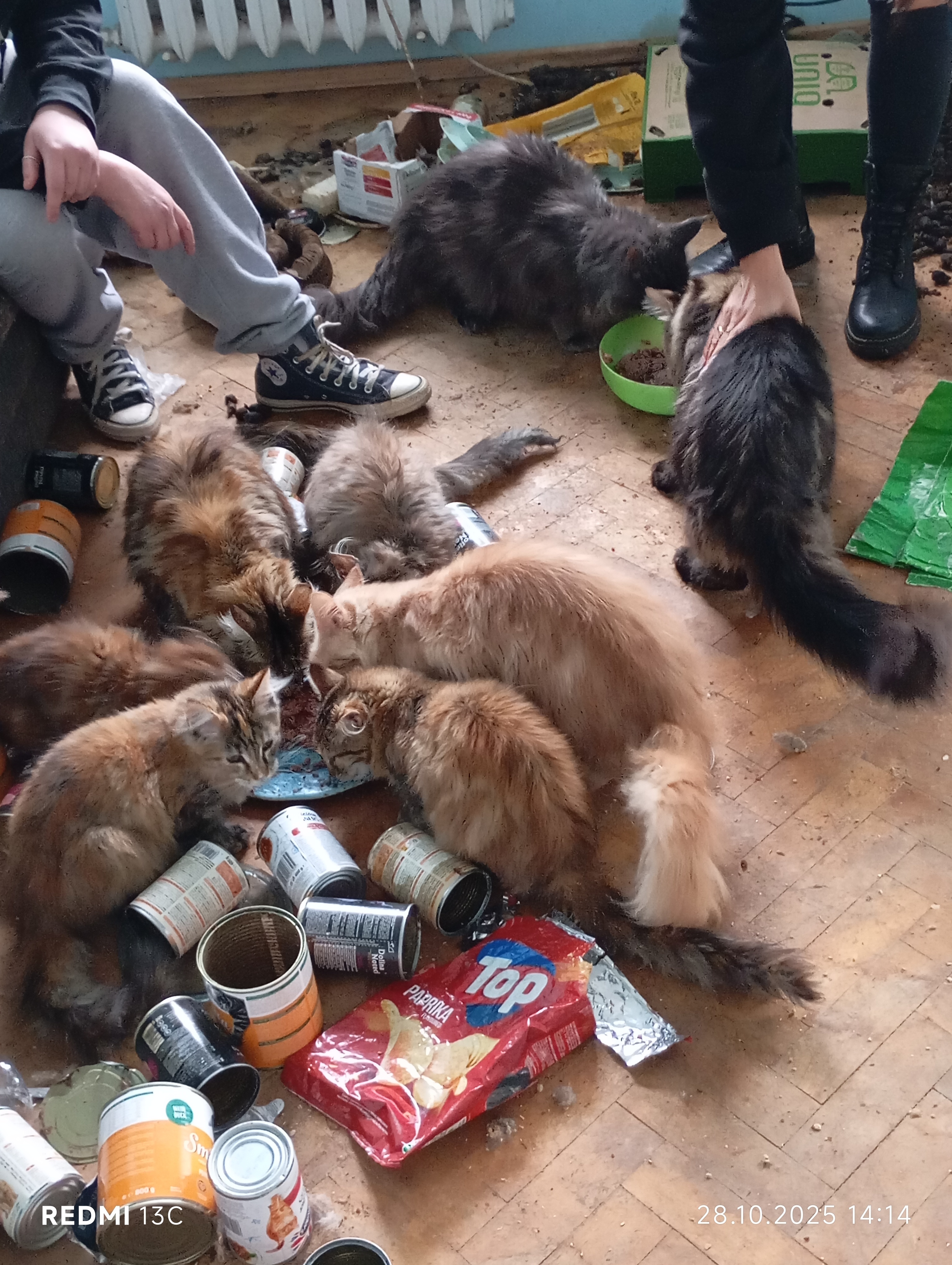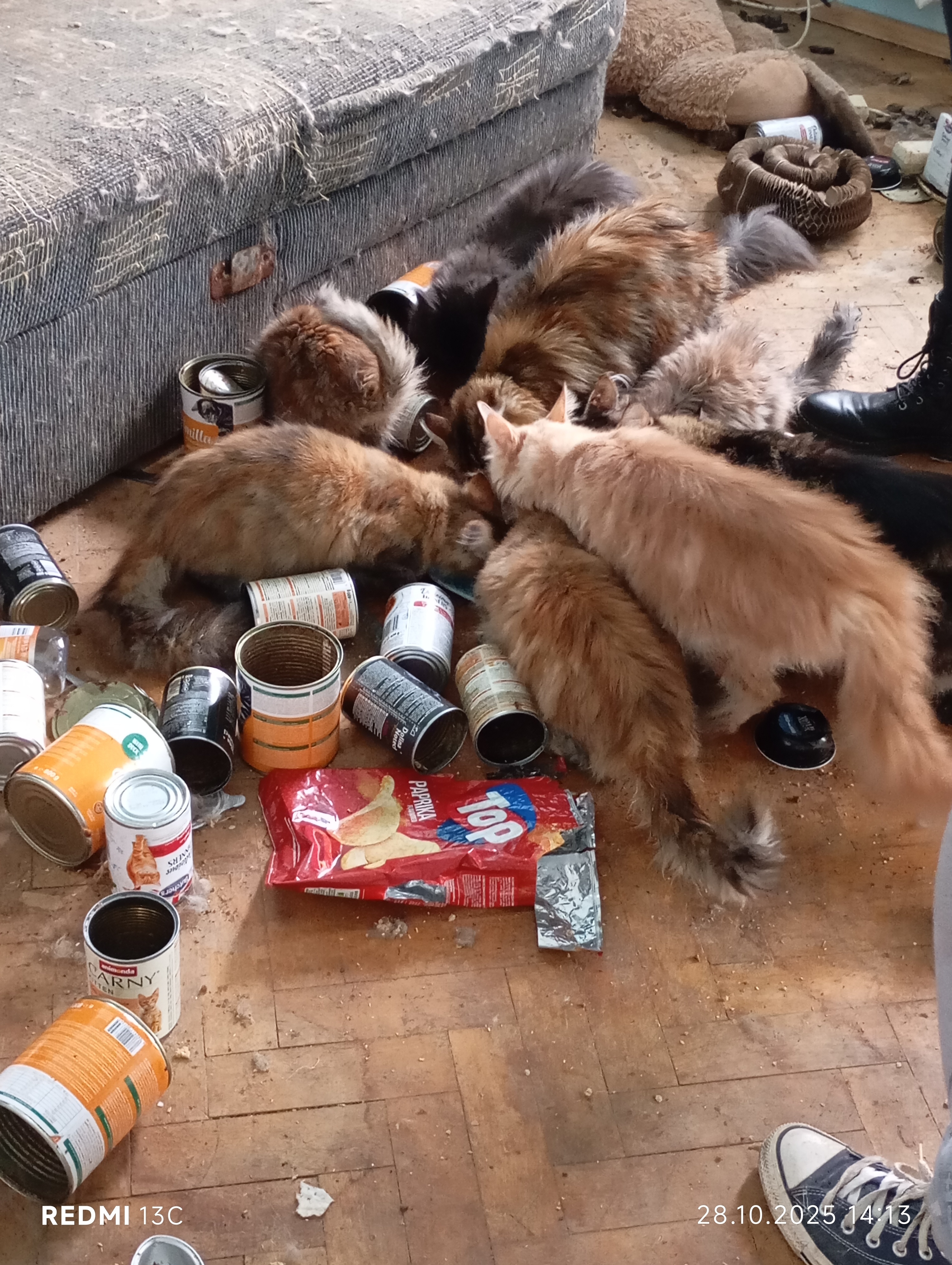 Inspektorzy OTOZ Animals przeprowadzili interwencję, podczas której zastali obraz dramatycznego zaniedbania. W mieszkaniu znajdowało się jedenaście kotów, przetrzymywanych w warunkach rażąco naruszających dobrostan zwierząt. Lokal był przepełniony śmieciami, zużytymi puszkami po karmie i warstwami odchodów. Brud był wszechobecny — również na meblach, które pokrywały kocie fekalia. W losowo porozstawianych miejscach stały przepełnione, od dawna nieczyszczone kuwety, a podłoga i nawet wanna służyły kotom za toaletę. W dniu interwencji zwierzęta nie miały dostępu do świeżej wody.