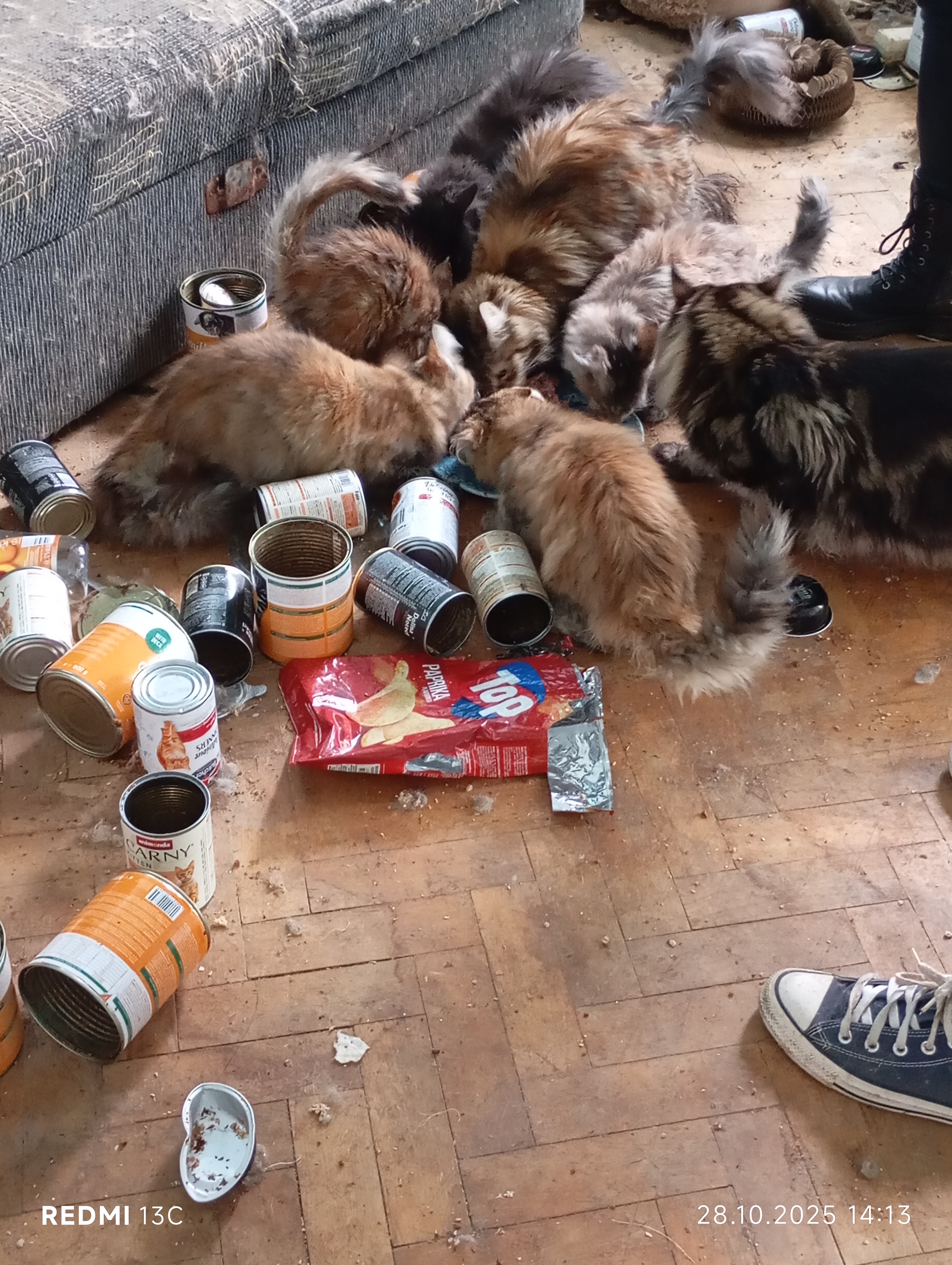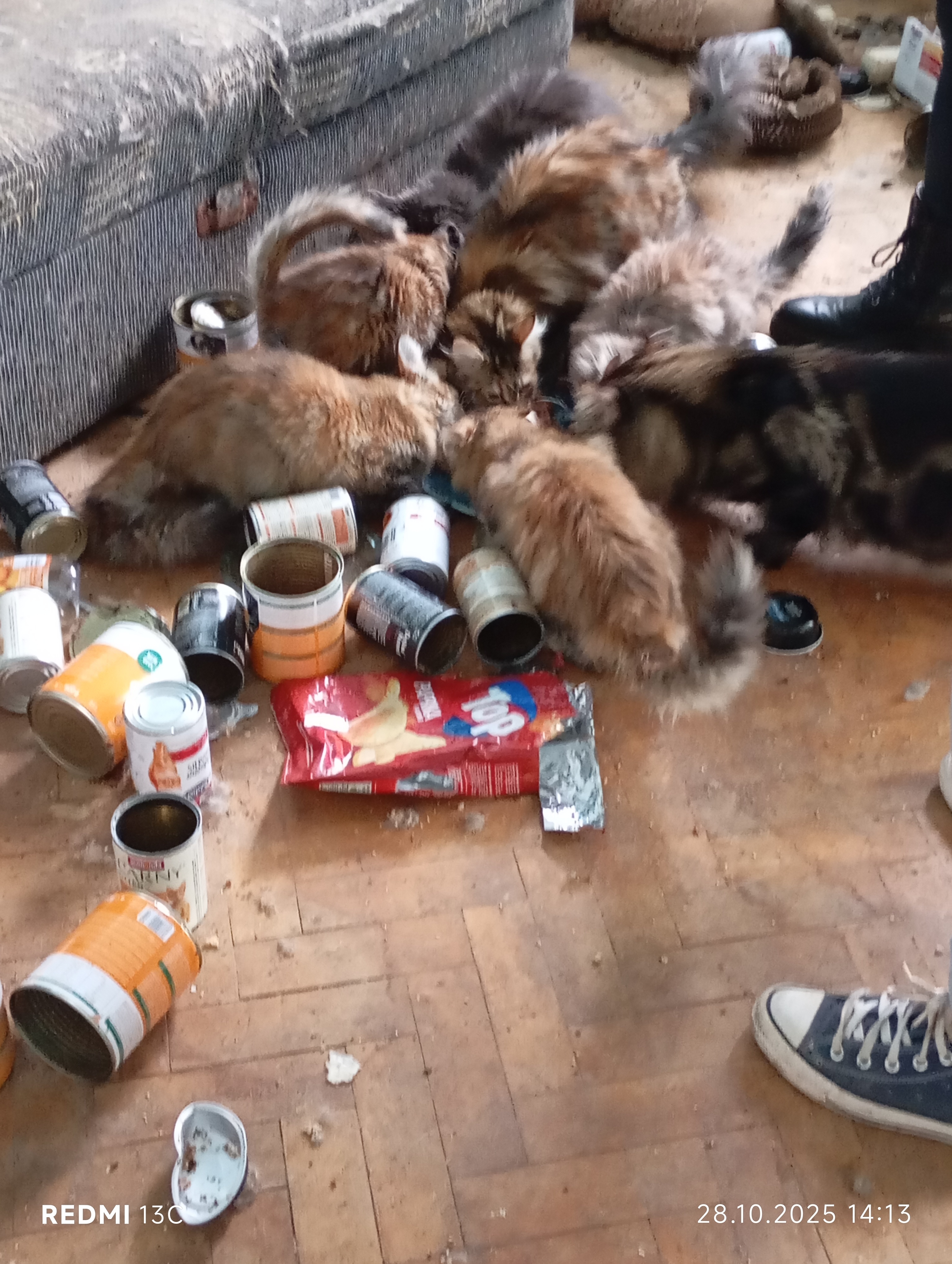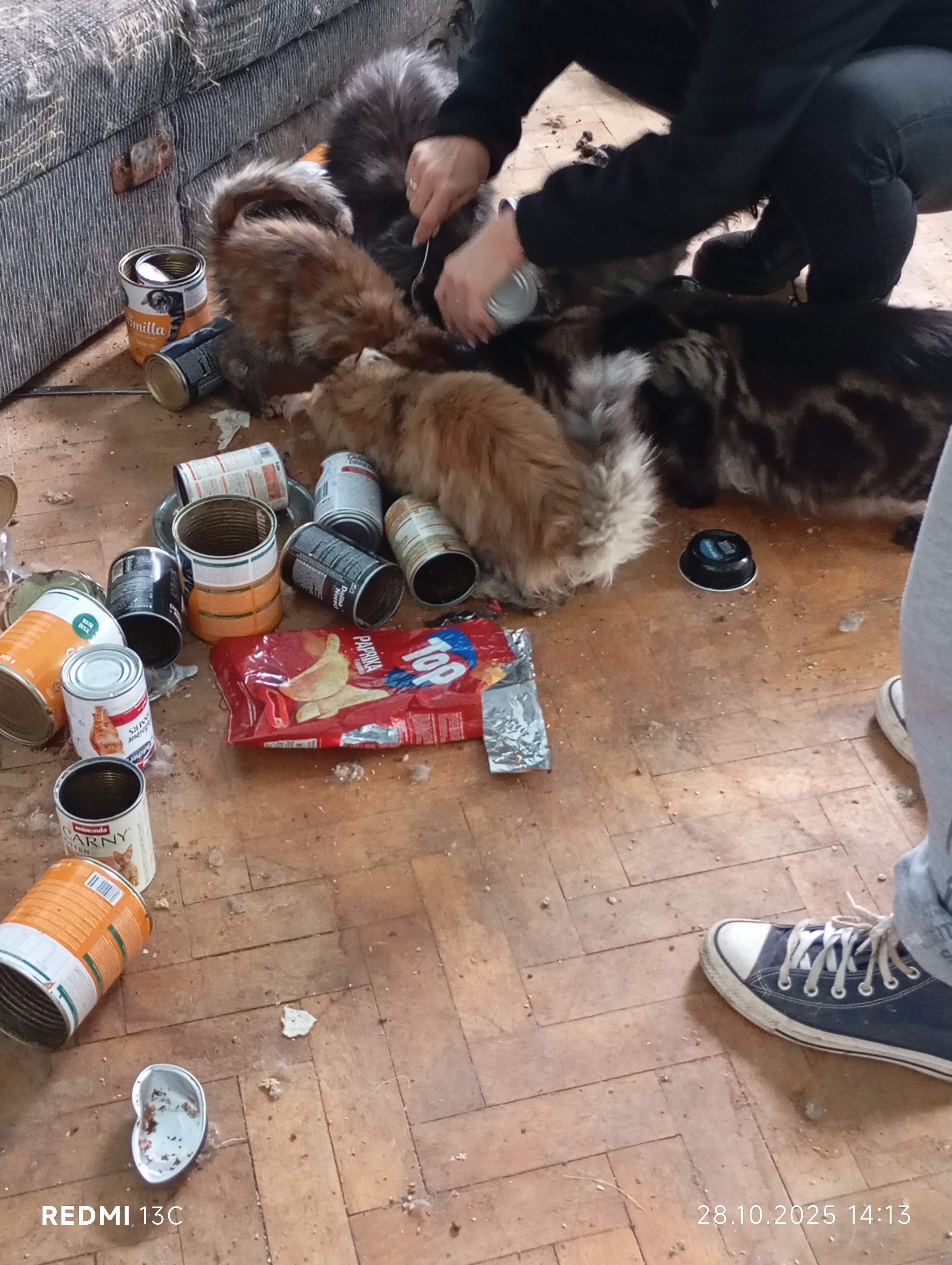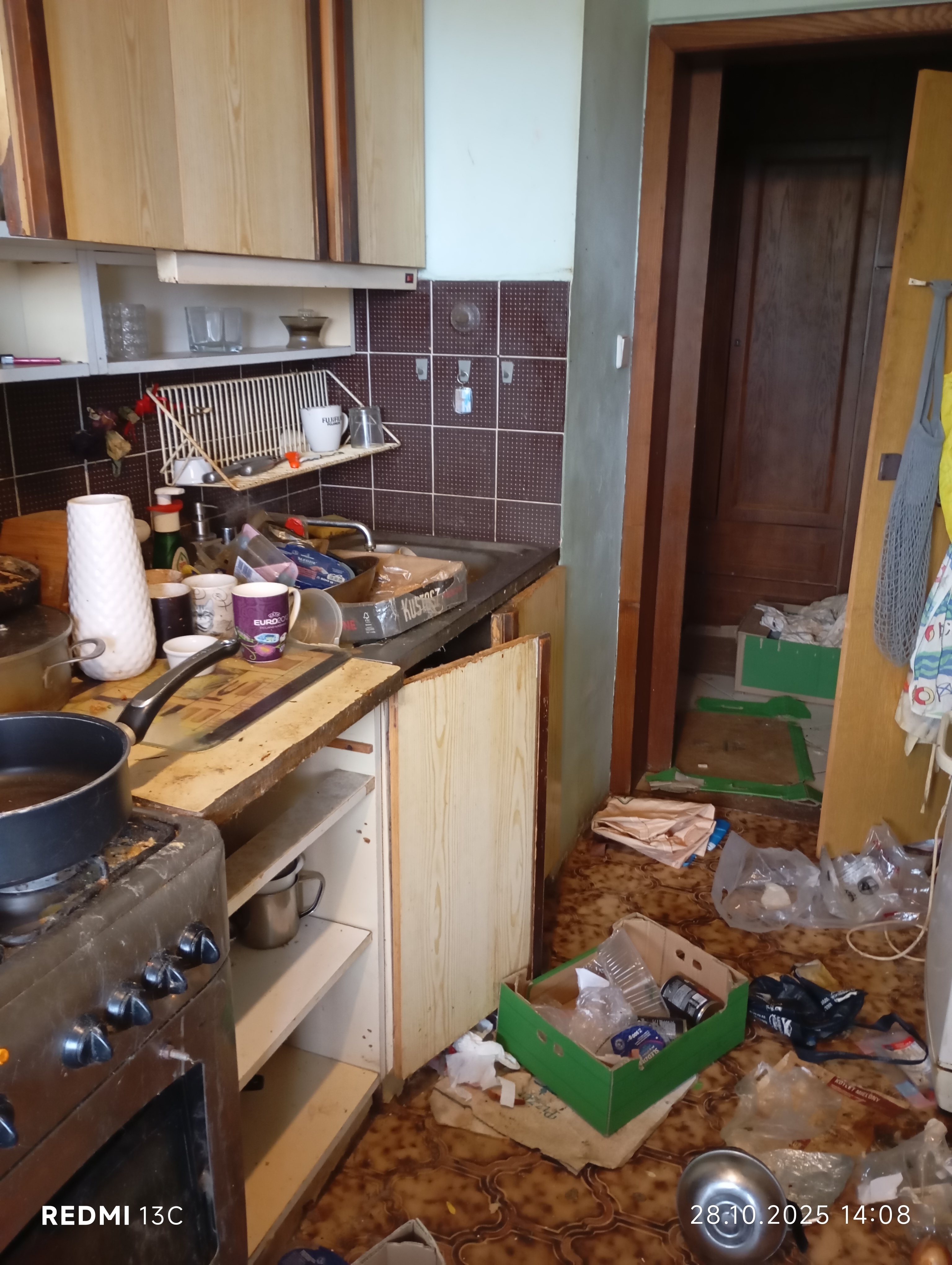 Inspektorzy OTOZ Animals przeprowadzili interwencję, podczas której zastali obraz dramatycznego zaniedbania. W mieszkaniu znajdowało się jedenaście kotów, przetrzymywanych w warunkach rażąco naruszających dobrostan zwierząt. Lokal był przepełniony śmieciami, zużytymi puszkami po karmie i warstwami odchodów. Brud był wszechobecny — również na meblach, które pokrywały kocie fekalia. W losowo porozstawianych miejscach stały przepełnione, od dawna nieczyszczone kuwety, a podłoga i nawet wanna służyły kotom za toaletę. W dniu interwencji zwierzęta nie miały dostępu do świeżej wody.