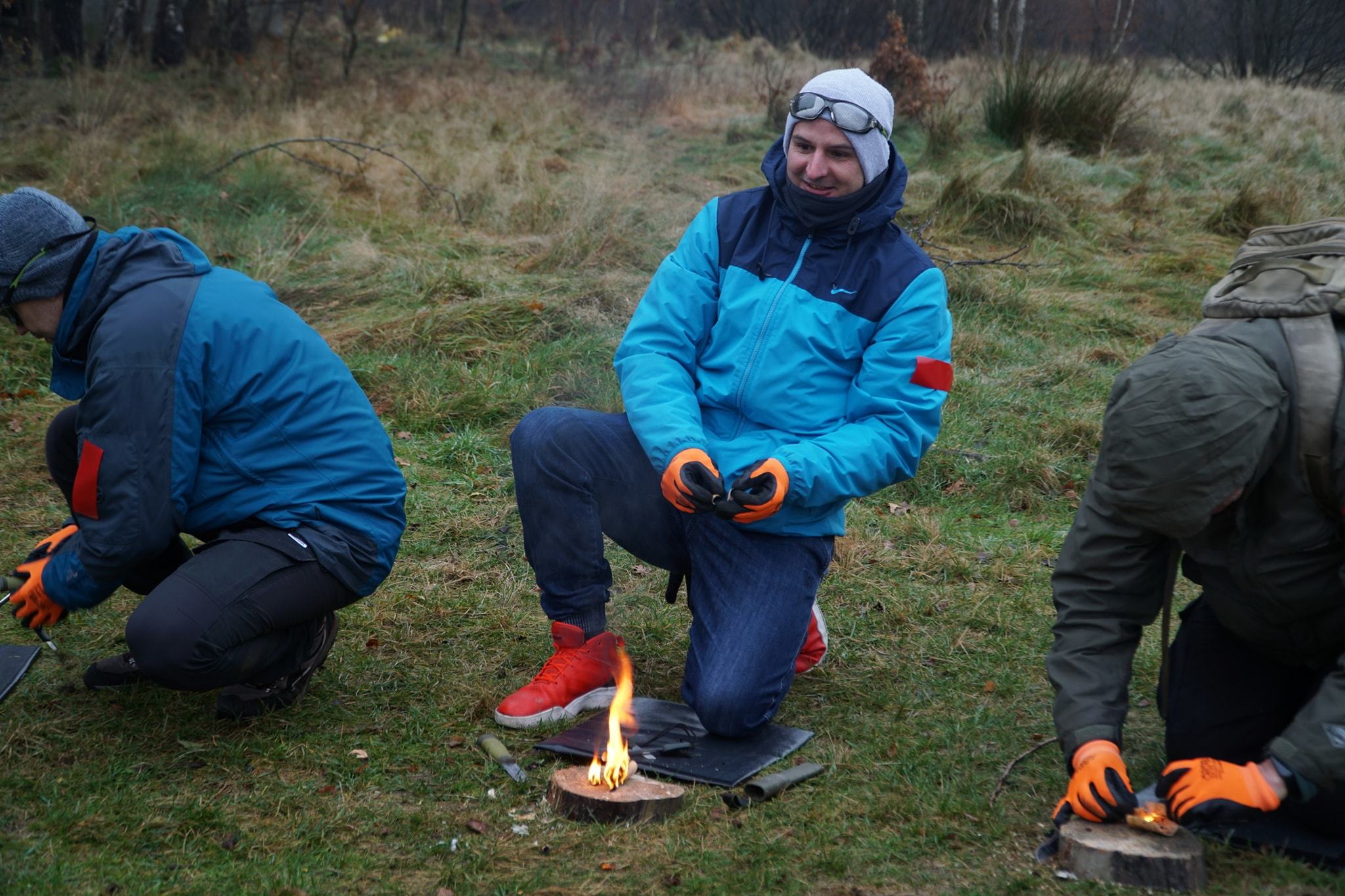 W dalszych etapach części survivalowej dowiedzieliśmy się jak m.in. rozpalić ognisko przy użyciu krzesiwa. Dowiedzieliśmy, że w naturze (nawet, jak jest mokro) najlepiej szukać kory brzozy. Najpierw przy użyciu noża należy zeskrobać zewnętrzną powierzchnię kory. Spowoduje to usunięcie wierzchniej warstwy kory, w wyniku czego powstaną bardzo drobne wióry/łuski, które są łatwopalne.