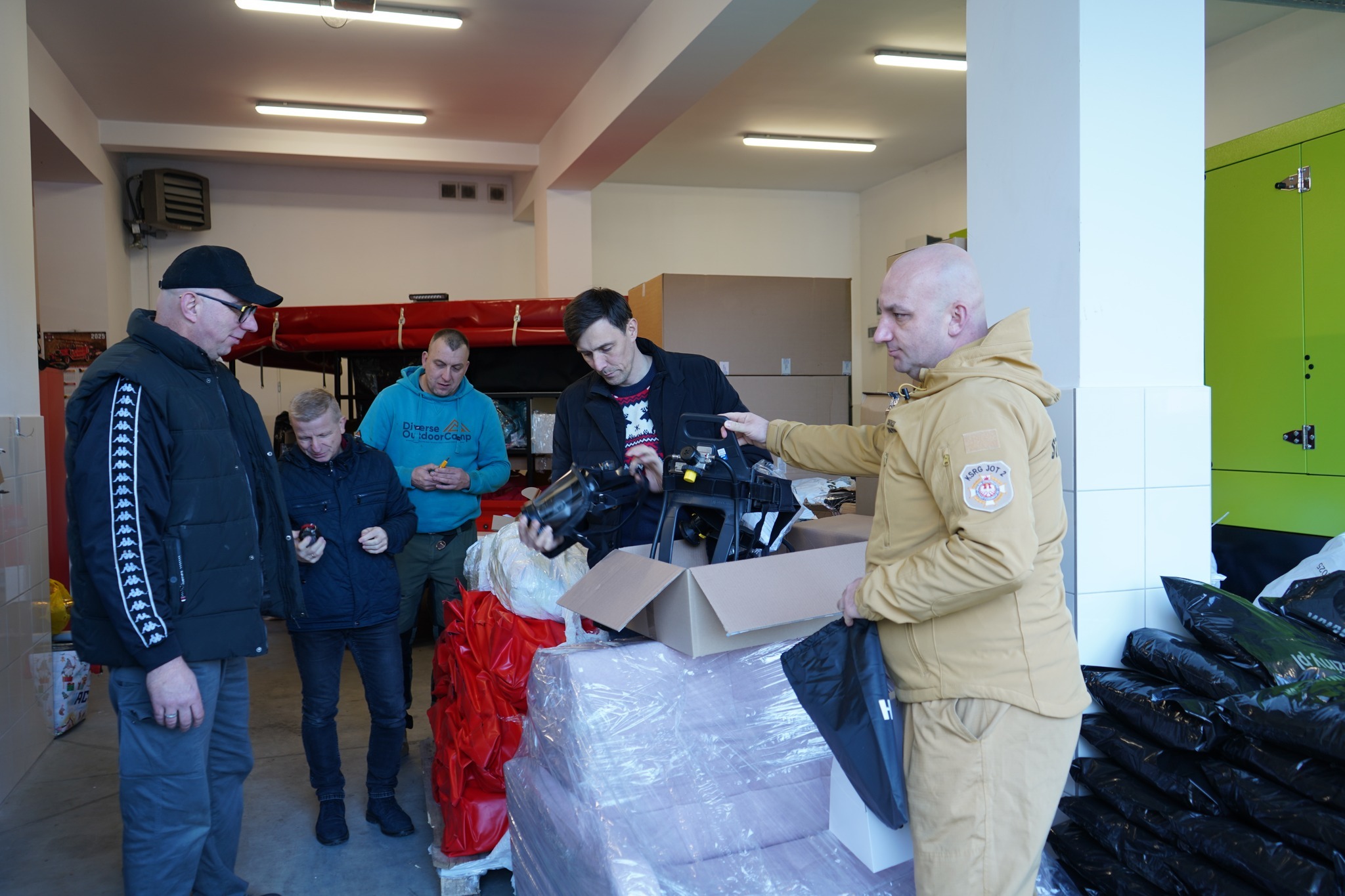 Wśród odebranego sprzętu znalazły się m.in. defibrylatory AED wraz z szafkami, ubrania specjalne, hełmy strażackie, specjalistyczne obuwie skórzane i gumowe, rękawice strażackie, a także pilarka ratownicza oraz piła do stali i betonu. Zakupiono również wodery ocieplane, węże tłoczne, zapory przeciwpowodziowe, osuszacze, maski przeciwgazowe, motopompy pływające o wydajności 1200 litrów na minutę oraz aparaty powietrzne wyposażone w sygnalizatory bezruchu.