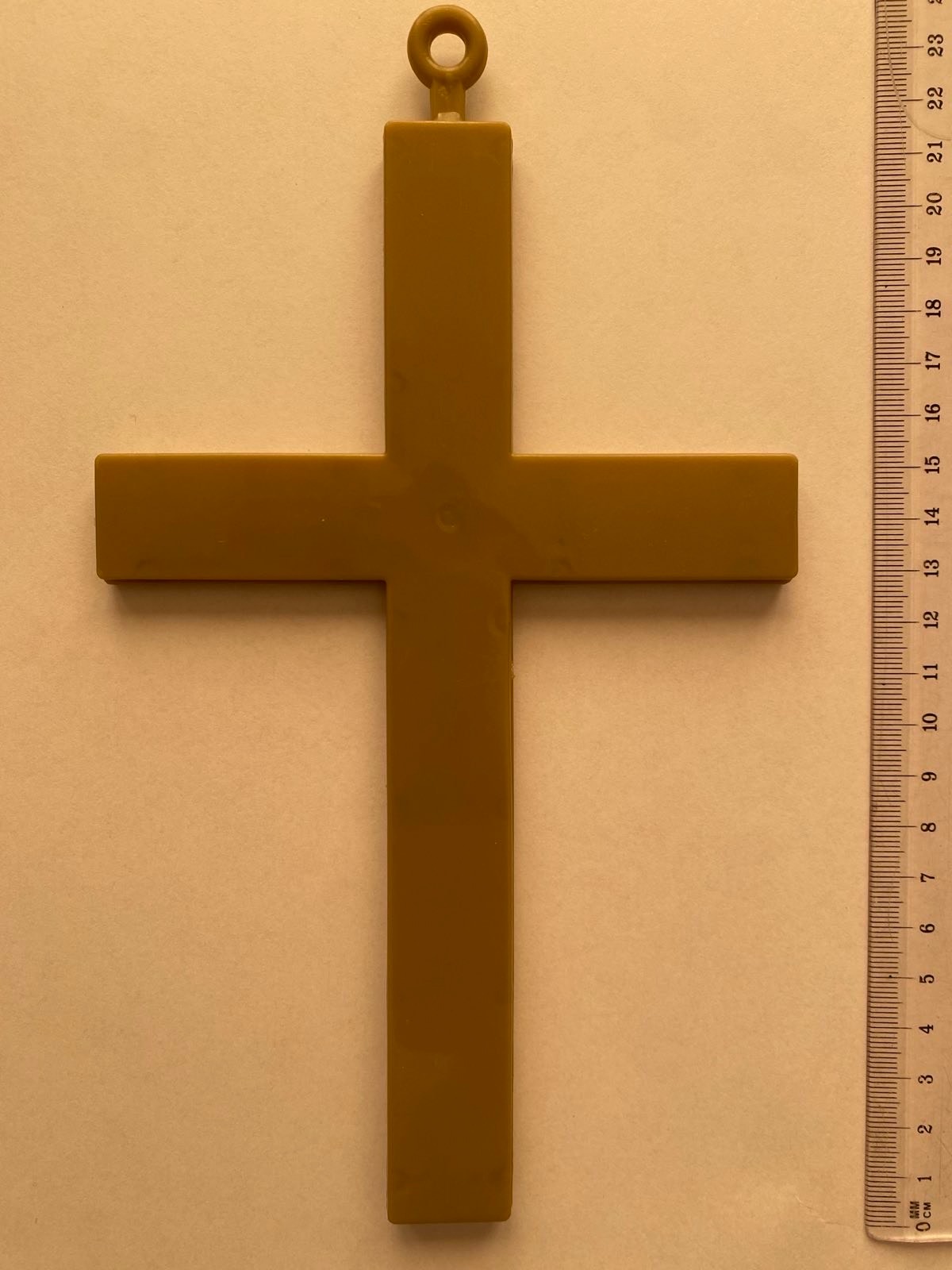 Policjanci zabezpieczyli do sprawy krzyż widoczny na zdjęciu. Jest on w całości wykonany z tworzywa sztucznego.