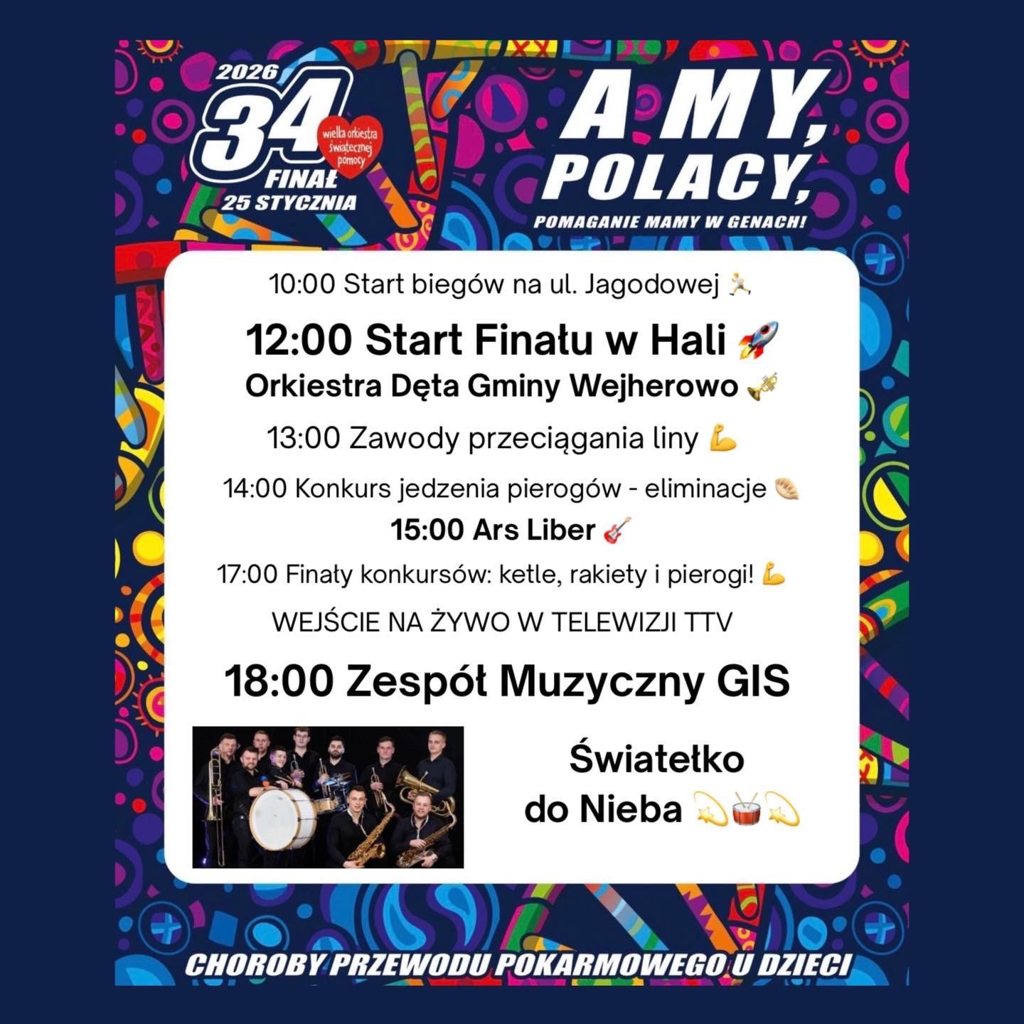 Finał Wielkiej Orkiestry Świątecznej Pomocy w powiatach wejherowskim i puckim to dziesiątki wydarzeń, setki wolontariuszy i tysiące osób, które wspólnie grają dla najmłodszych pacjentów. Tegoroczny cel – wsparcie dzieci z chorobami przewodu pokarmowego pokazuje, że każda złotówka wrzucona do puszki czy wylicytowana na aukcji może realnie przełożyć się na lepszą diagnostykę i leczenie. Organizatorzy zachęcają do udziału w lokalnych wydarzeniach i wspólnego grania do końca świata i jeden dzień dłużej.