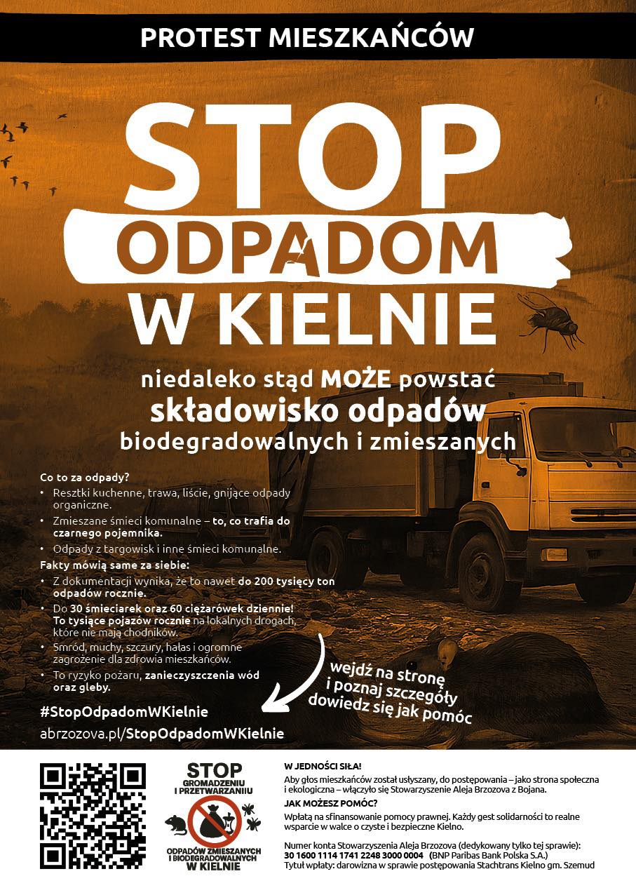 Szczegóły dotyczące protestu oraz możliwości wsparcia działań mieszkańców dostępne są na stronie internetowej inicjatywy „Stop odpadom w Kielnie”.