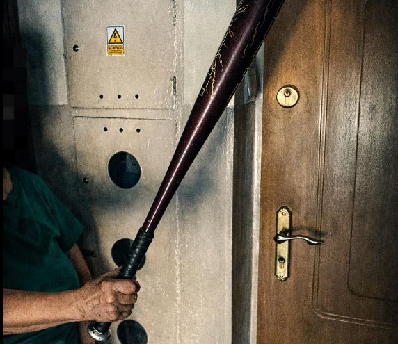 Obok stał w pogotowiu kij baseballowy.