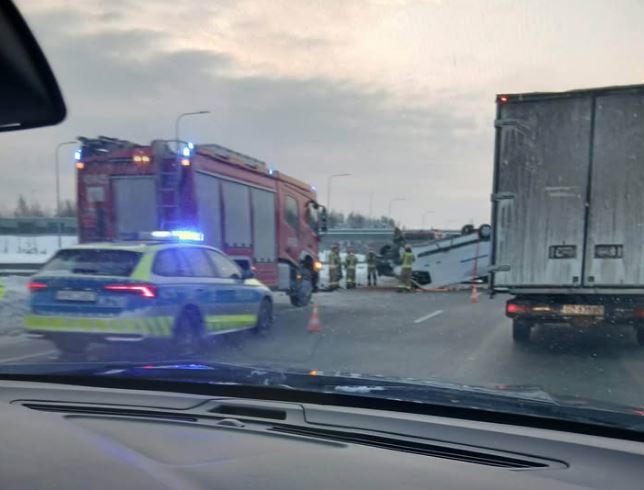 Do groźnie wyglądającego zdarzenia doszło dziś (18 lutego) około godziny 6:35 na obwodnicy w Gdyni, na wysokości Alei Kazimierza Jagiellończyka. W rejonie zjazdu na Wielki Kack dachował bus, blokując dwa pasy ruchu w kierunku Gdańska.