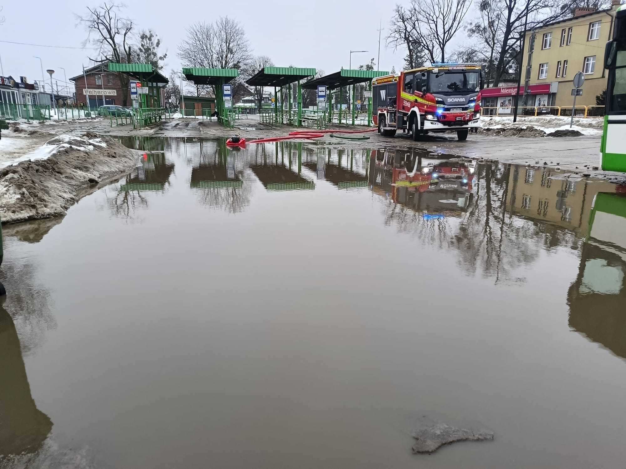 — Dodatnie temperatury występujące w ciągu ostatnich dób spowodowały topnienie śniegu, który zalega na naszych ulicach od dłuższego czasu. Zatkane kratki ściekowe przez lód nie przyjmują wody, co przyczynia się do powstawania lokalnych podtopień - czytamy w komunikacie OSP w Wejherowie.