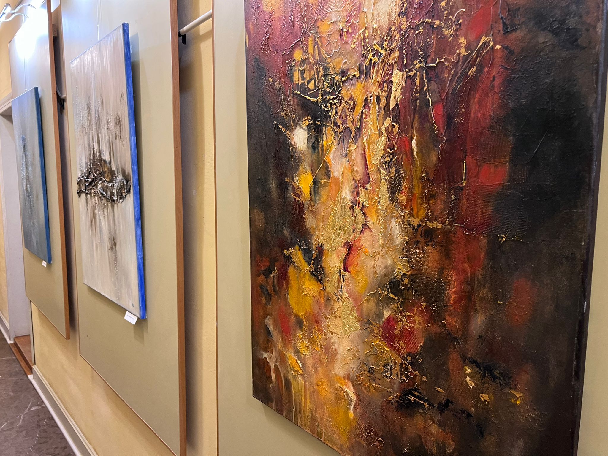 – To są obrazy głównie abstrakcyjne, bo ostatnio tym się głównie zajmuję, poszukuję różnych metod, form wypowiedzi artystycznej poprzez fakturę, barwę, poprzez struktury różnego rodzaju, no i jakieś skojarzenia, jakieś abstrakcyjne przedstawienia rzeczywistości, czy moich przeżyć.