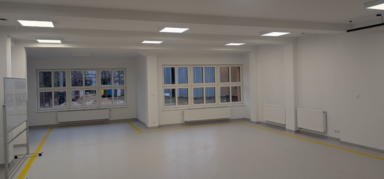 W ramach prac w dawnym budynku kotłowni wykonano nowy strop, dzięki czemu obiekt zyskał drugą kondygnację. Rozebrano również stary komin, a pomieszczenia dostosowano do nowych funkcji dydaktycznych. Roboty budowlane zakończyły się 15 grudnia 2025 roku.