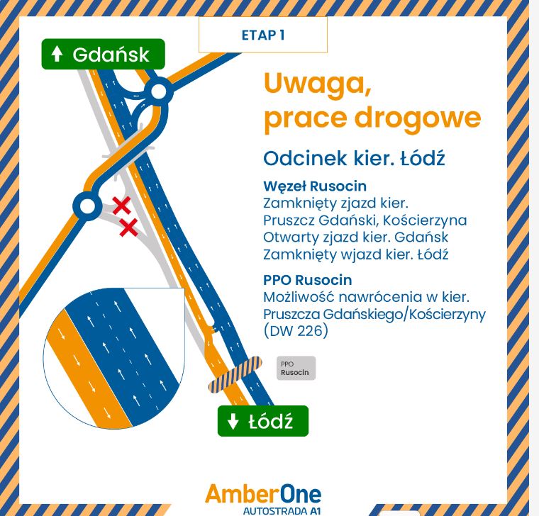 Zmiany dotkną również węzła Rusocin. Od strony Gdyni nie będzie możliwości zjazdu na wiadukt. Kierowcy będą musieli zawrócić przed bramkami i skorzystać z wjazdu od strony przeciwnej jezdni, aby kontynuować podróż w kierunku Jagatowa lub Pruszcza Gdańskiego.
