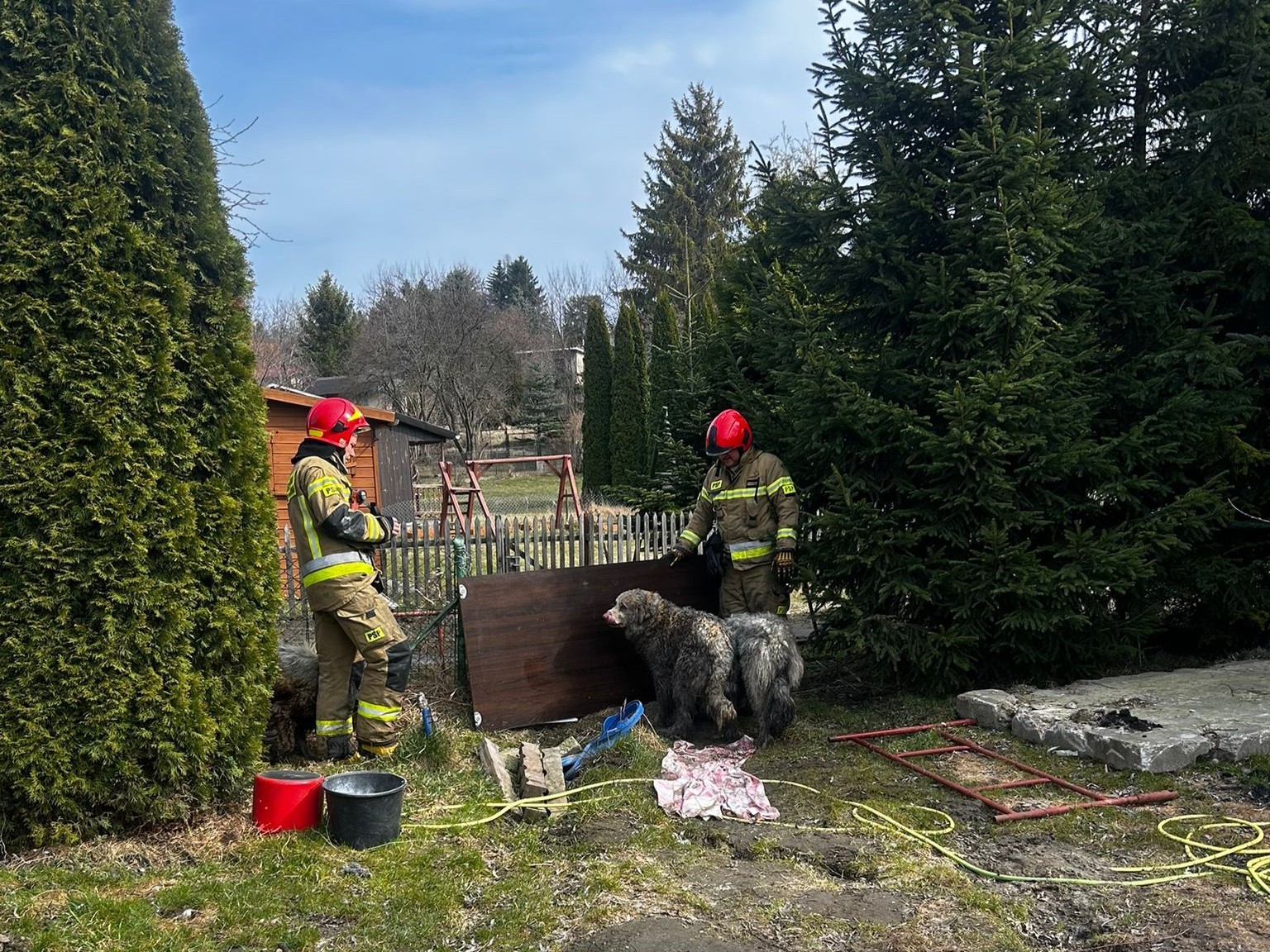 Dwa zastępy strażaków udały się do pożaru na terenie ROD Odnowa przy ul. Cedrowej w Gdańsku. Zgłaszający informowali, że wewnątrz znajduje się kilka psów.