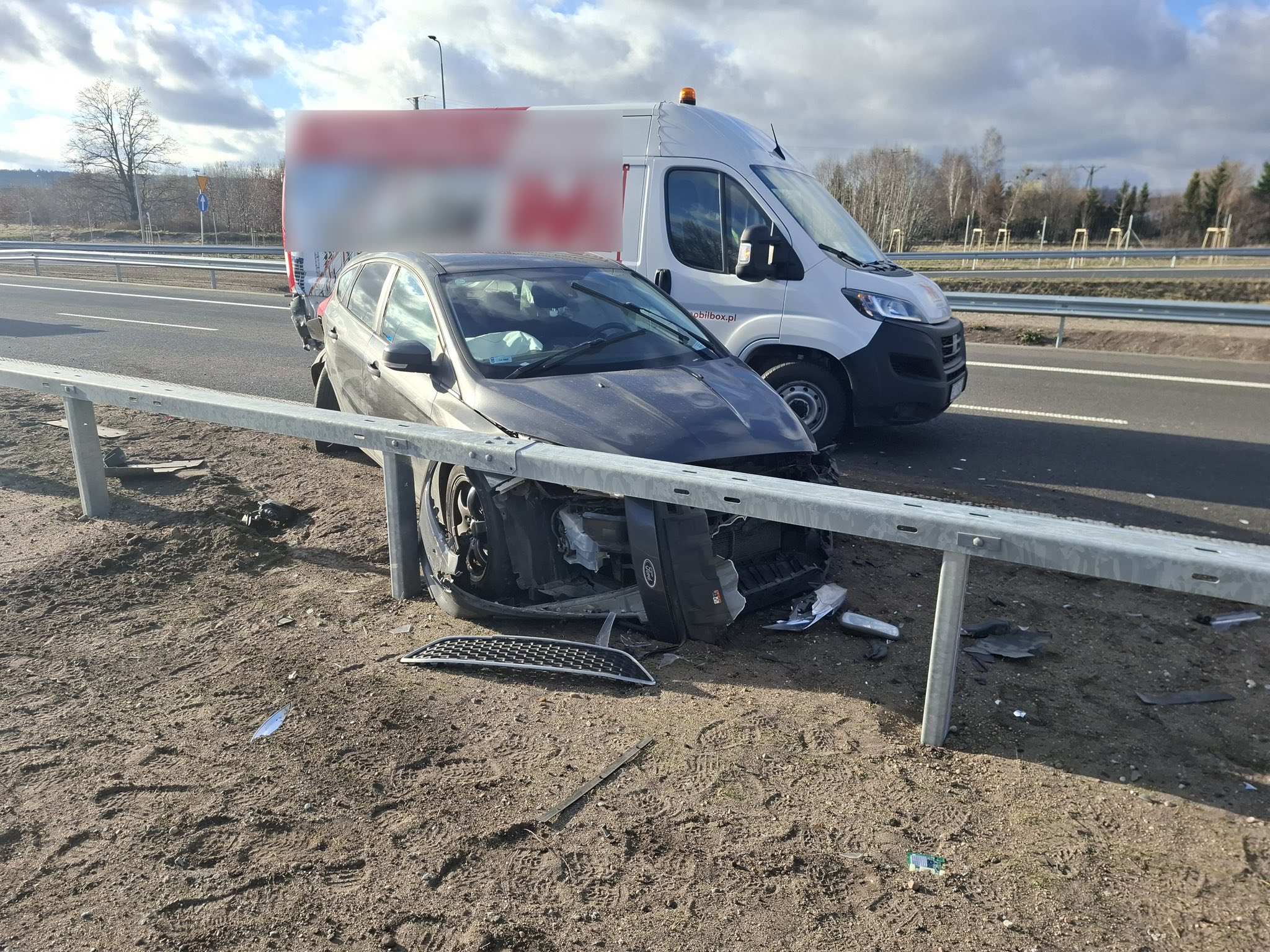 Zlekceważył bezpieczny odstęp i przepisy prawa, co doprowadziło do groźnego zdarzenia na trasie S6. 47-letni kierowca Forda, jadąc „na zderzaku”, uderzył w tył dostawczego Fiata, a następnie w bariery energochłonne.