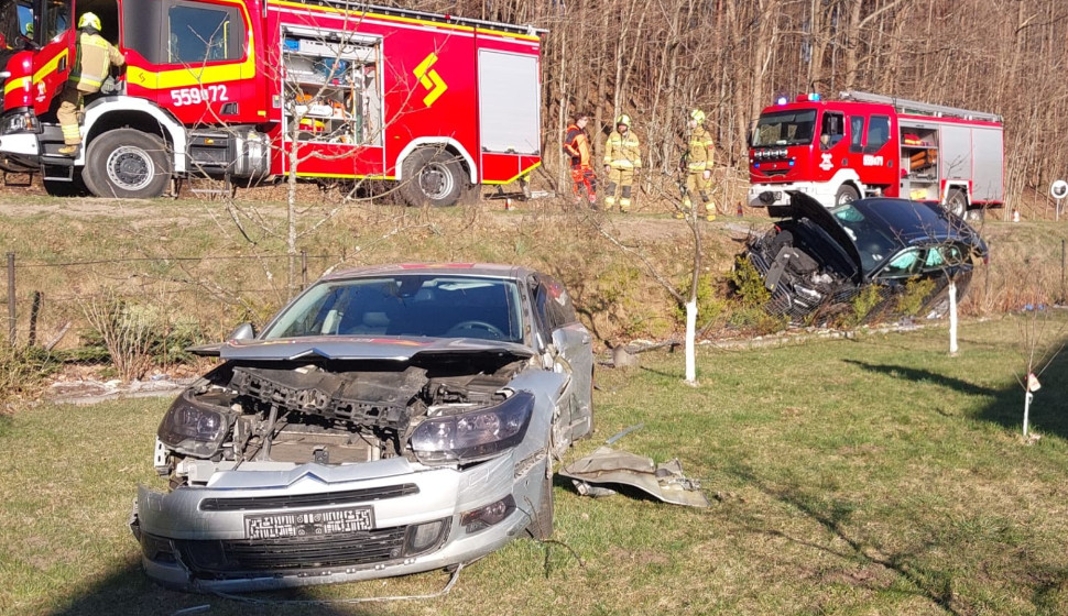 Na miejscu zdarzenia pracowały trzy zastępy straży pożarnej – jeden z Państwowej Straży Pożarnej oraz dwa z Ochotniczej Straży Pożarnej. Służby otrzymały zgłoszenie o godzinie 17:11. Działania ratownicze obejmowały zabezpieczenie miejsca wypadku, odłączenie akumulatorów w uszkodzonych pojazdach oraz udzielenie wstępnej pomocy medycznej osobie z lekkimi obrażeniami.