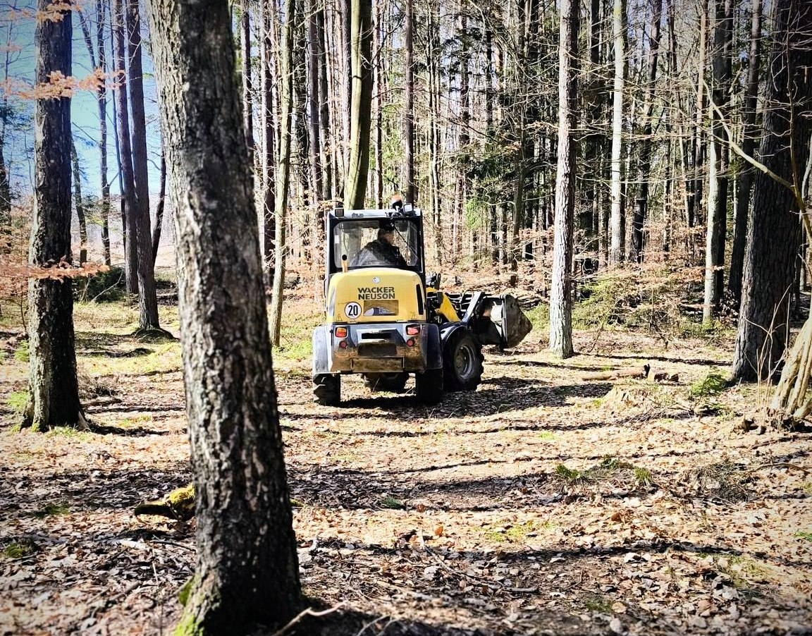 W leśnej dziupli na terenie powiatu wejherowskiego ukryto minikoparkę.