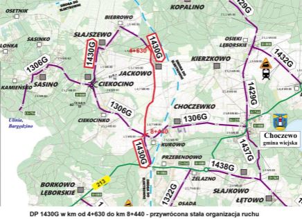 — Ze względu na wystąpienie bezpośrednie zagrożenia osób i mienia w związku z licznymi uszkodzeniami nawierzchni jezdni oraz poboczy drogi powiatowej nr 1430G, Zarząd Dróg Powiatowych w Wejherowie wprowadza w dniu 10 kwietnia 2026 roku od godz. 20 na wskazanym odcinku drogi ograniczenie poruszania się pojazdów o rzeczywistej masie całkowitej ponad 10 ton z wyłączeniem obsługi mieszkańców — poinformował wówczas w piśmie Robert Lorbiecki, dyrektor ZDP w Wejherowie.