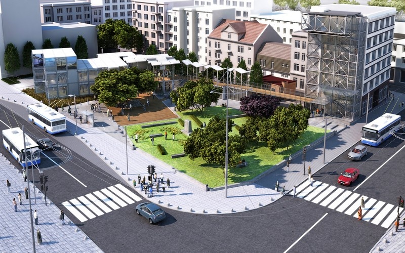 Równolegle, jesienią rozpoczną się prace nad architekturą krajobrazu i małą architekturą. W zielonej części skweru zostaną posadzone rośliny tak, by na wiosnę miejsce to rozkwitło. Od początku roku 2013 trwać będą roboty wykończeniowe i aranżacja wnętrz Infoboxu.