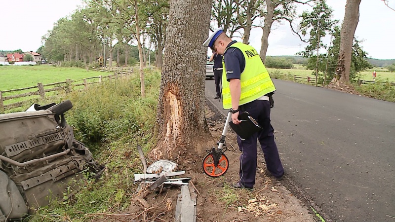 Kierwoca Renault Kangoo stracił panowanie nad autem, po czym uderzył w drzewo, przekoziołkował i wpadł do rowu. Kierowcy nic się nie stało. Pasażer został niegroźnie ranny. Przewiziono go szpitala w Wejherowie. Policja wyjaśnia okoliczności wypadku.