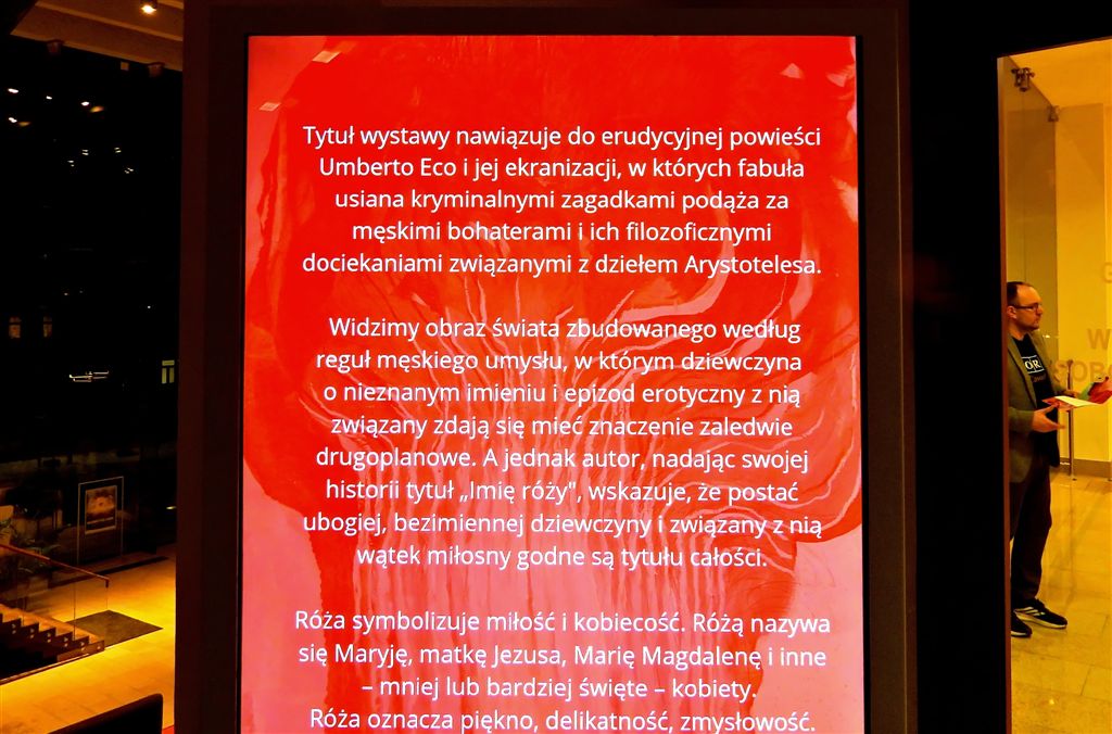 W Filharmonii Kaszubskiej odbył się wernisaż wystawy "Imię Róży" Katarzyny Swinarskiej. Tytuł wystawy nawiązuje do erudycyjnej powieści Umberto Eco i jej ekranizacji, w których fabuła usiana kryminalnymi zagadkami podąża za męskimi bohaterami i ich filozoficznymi dociekaniami związanymi z dziełem Arystotelesa.