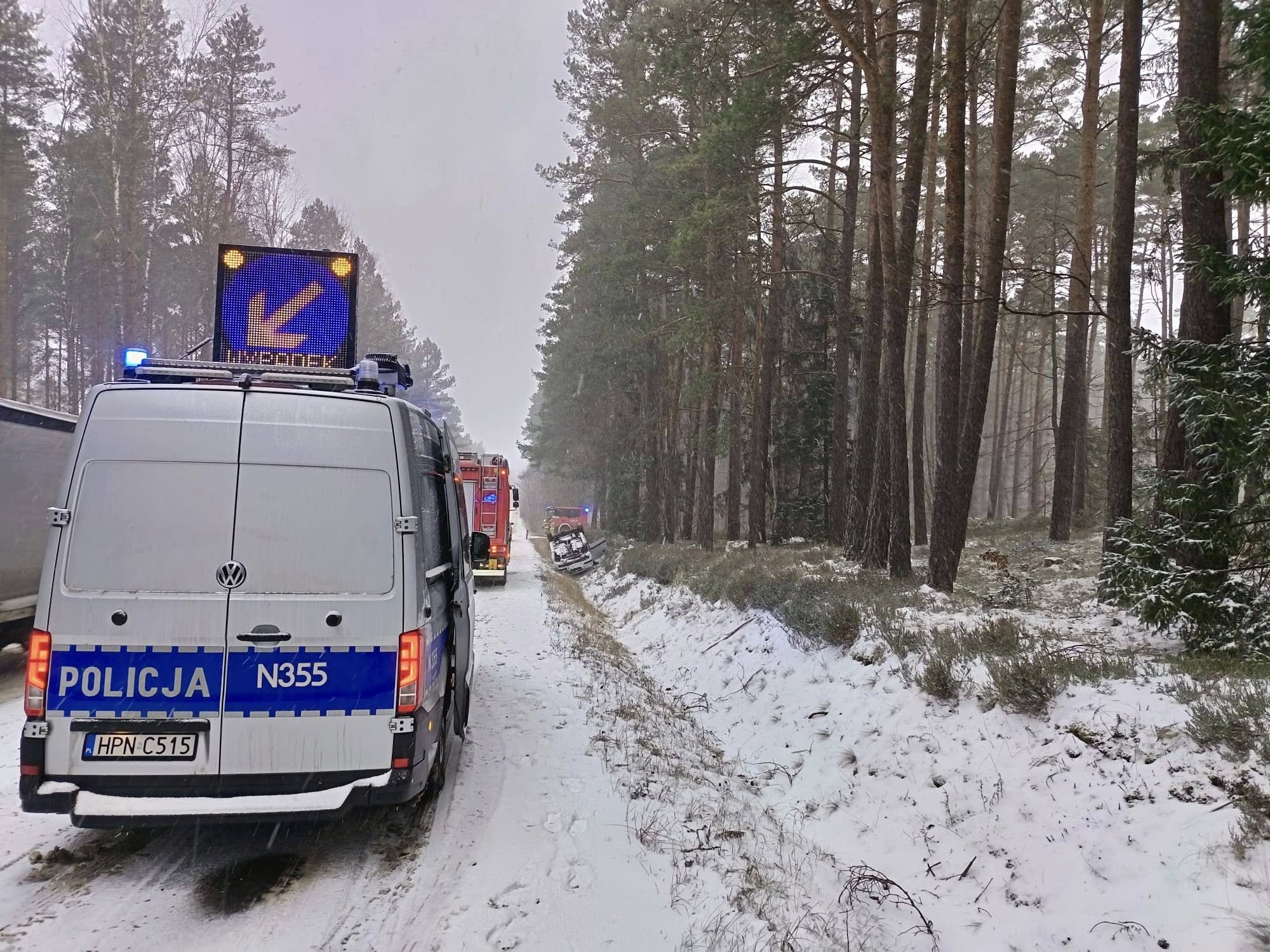 Dachowanie samochodu w Przetoczynie. Przyczyną nie tylko trudne warunki pogodowe