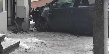 W Wejherowie osobówka uderzyła w budynek | ZDJĘCIA