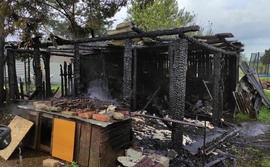 W Połchówku piorun uderzył w składzik na drewno. Drewniana konstrukcja doszczętnie spłonęła.