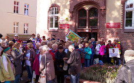 Studenci Uniwersytetu Trzeciego Wieku w Wejherowie stawili się w pełnym składzie przed Powiatową Biblioteką Publiczną, by przeżyć podróżniczą przygodę „Śladami Stolemów”.