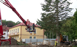 Kilkunastometrowa stara jodła mogła się przewrócić na ulicę Strzelecką w Wejherowie. Ostatecznie strażakom z wejherowskiej komendy powiatowej udało się zapobiec niebezpieczeństwu. Samo drzewo, którego system korzeniowy uległ uszkodzeniu podczas robót budowlanych, musiało zostać ścięte.