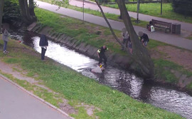 Przechodnie z zainteresowaniem przyglądali się mężczyźnie, który wpadł do wody. Niektórzy nagrywali zdarzenie za pomocą telefonu, jednak nikt nie ruszył z pomocą, mimo że było o krok od tragedii. Bo wprawdzie rzeka jest dość płytka, ale mężczyzna, o którym mowa, był kompletnie pijany. Gdyby zachłysnął się wodą, mógłby utonąć. Uratował go dopiero strażnik miejski, który przybiegł na miejsce z oddalonej o kilkaset metrów komendy.