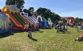 Kilkanaście dmuchanych zjeżdżalni czekało na najmłodszych mieszkańców w Rumi w niedzielne popołudnie (2 czerwca) na boisku wielofunkcyjnym przy ulicy Bukowej. Dzieci mogły za darmo skorzystać z atrakcji po wykonaniu konkurencji sportowych. Przepustką do darmowej strefy były opaski wręczane dzieciom po zrealizowaniu dostosowanych do ich wieku zadań.