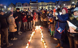 Mieszkańcy Pucka wyrazili swoją solidarność ze strajkującymi nauczycielami, zapalając znicze w kształcie wykrzyknika.