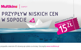Od 1 marca w Multikinie Sopot obowiązuje nowy cennik biletów. Dzięki niemu widzowie za każdy film 2D z aktualnego repertuaru Multikina zapłacą jedyne 15 zł!