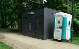 Dla wygody mieszkańców i turystów w przestrzeni wejherowskiego parku, niezbędna jest nowoczesna toaleta. Taka też powstała, niestety jej drzwi nadal są zamknięte i w najbliższym czasie raczej niewiele się zmieni.