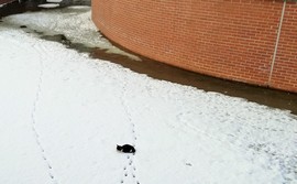 Mały kotek, spacerując po zamarzniętej rzece, znalazł się w śmiertelnym niebezpieczeństwie. Gładka powierzchnia ścian, które zabezpieczają koryto rzeki, okazała się dla niego przeszkodą nie do pokonania. Gdyby nie pomoc strażników miejskich i strażaków, zwierzę mogłoby zginąć.