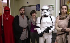 W czwartek (15 grudnia) w Wejherowie spotkali się fani Gwiezdnych wojen. Postacie z filmu najpierw pojawiły się na oddziale wejherowskiego szpitala, a do wieczora zawładnęły całym miastem.