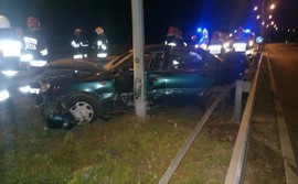 Samochód osobowy wypadł z drogi i wpadł pomiędzy barierki. W wyniku zdarzenia kierowca został przetransportowany do szpitala.