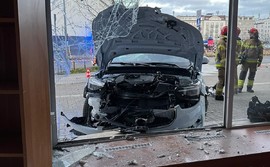Samochód osobowy wjechał w witrynę sklepu znajdującego się na parterze budynku w Gdyni. Dwie osoby zostały poszkodowane.