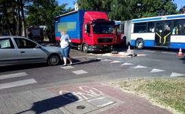 Na skrzyżowaniu ulic Starowiejskiej i Wybickiego w Rumi zderzyły się trzy samochody, ciężarówka i dwa samochody osobowe. Jedna osoba została ranna.